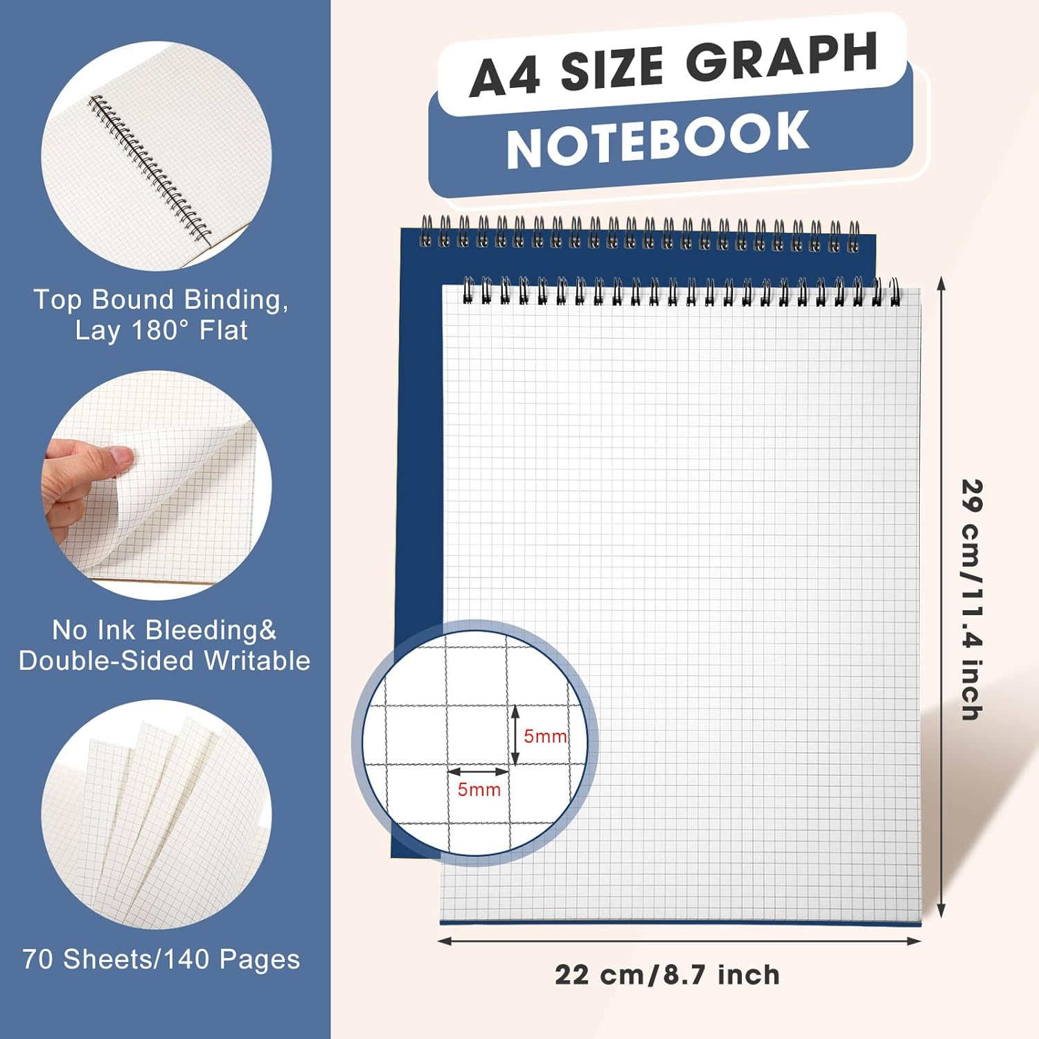 - What You Will Get: you will receive 2 pack graph paper spiral notebooks, each size is about 8.7 x 11.4 inches/ 22 x 29 cm, 140 pages/ 70 sheets per notebook; These notebooks slip easily into a backpack and are easy to carry along; They are suitable for office, business, school, and are ideal gifts for friend, family, or business colleagues