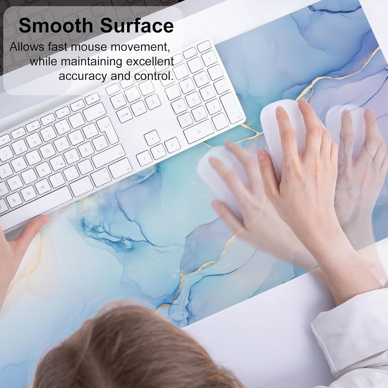 - Durable Non Slip Material - Dense PU leather material makes this big mouse mat stay in place on the desktop, providing stable operation of the mouse and keyboard.