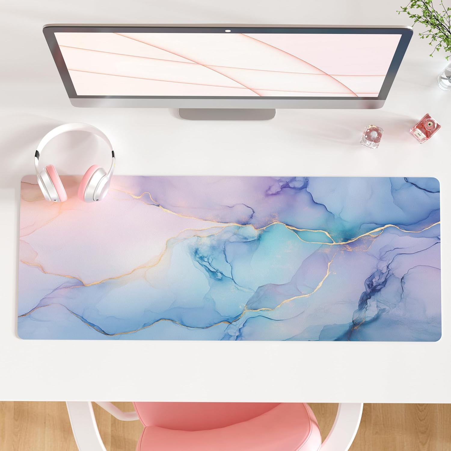QIYI Large Mouse Pad, PU Leather Desk Mat for Desktop, Waterproof Gaming Desk Pad, Marble Painting Full Desk Accessories Keyboard Mousepad, Home & Office Décor 31.5" x 11.8" - Abstract Fluid Art