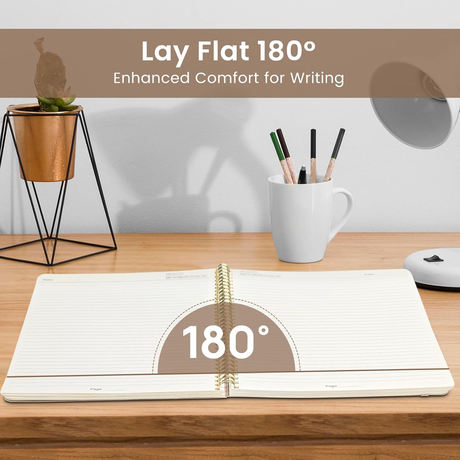 - Practical Design for Long-Lasting Use: Built for long-lasting use, our journal notebook features a strong double-wire spiral binding for smooth page-turning and a lay-flat design for ease of writing. The elastic closure strap keeps your pages secure and tidy, waterproof plastic cover keep pages clean. Slim and lightweight, it fits seamlessly into briefcases, backpacks, or tote bags, making it the perfect companion for work, school, or travel.
