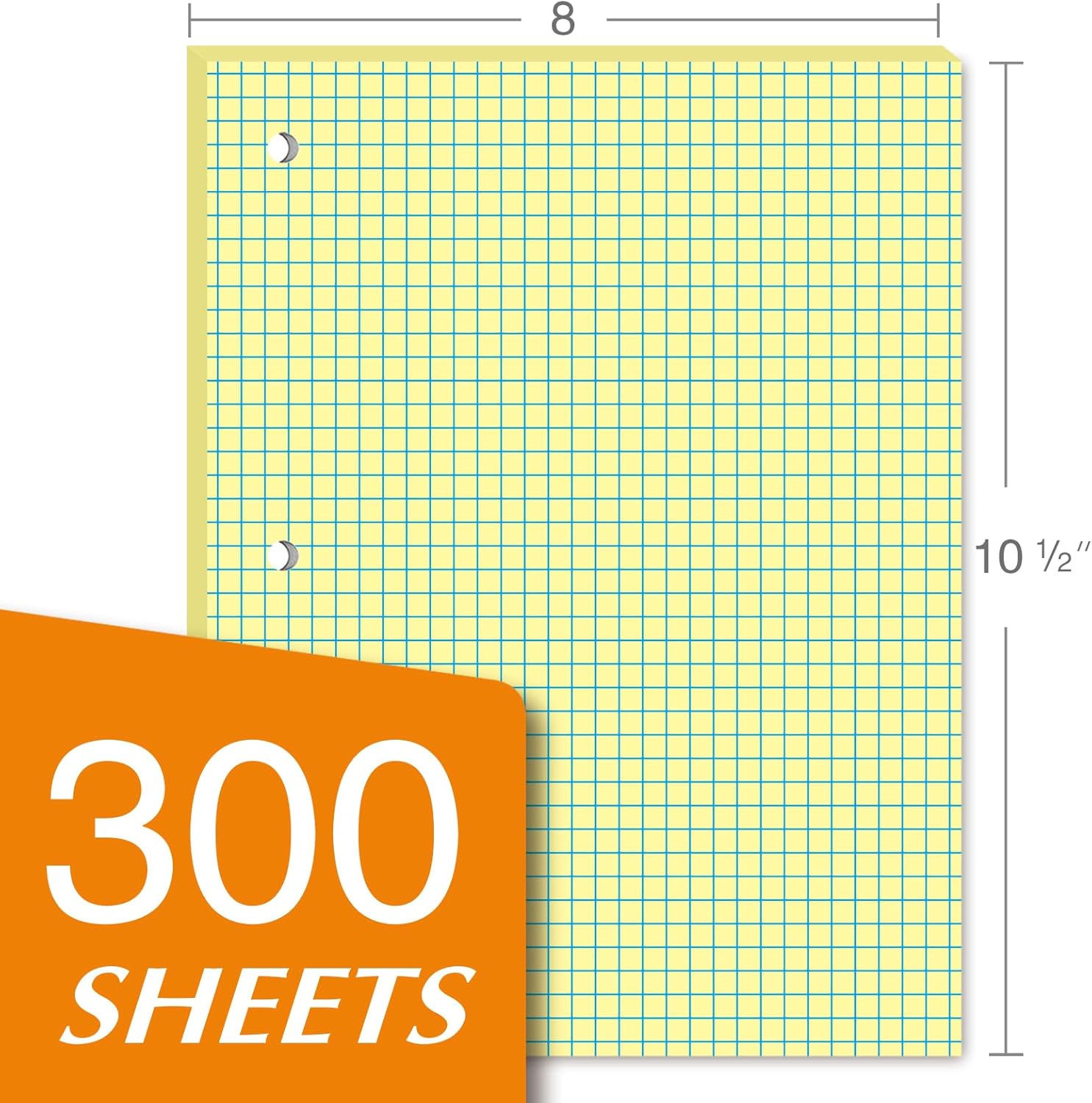 - Standard size: KAISA Graph ruled loose leaf paper have 300 sheets per pack,10.5x8 inch letter sized and 3-hole punched to fit standard ring binders & pocket folders with fasteners.Suitable for A4 Binders.