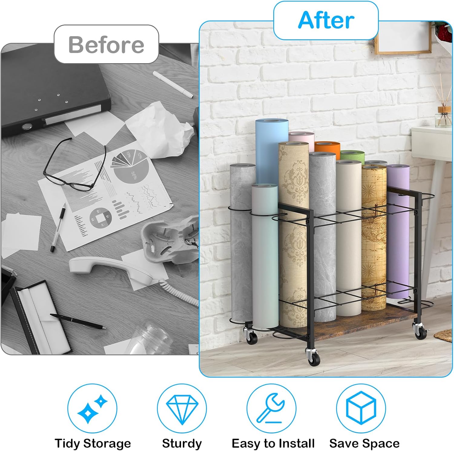 - Versatile Organization Solution: Our Wrapping Paper Holder is ideal for architects, artists, event planners, and home organizers. Store blueprints, construction plans, flat files, artworks, vinyl rolls,posters,butcher paper, and crafts, and more. Adapts to evolving needs with adjustable slot flexibility.