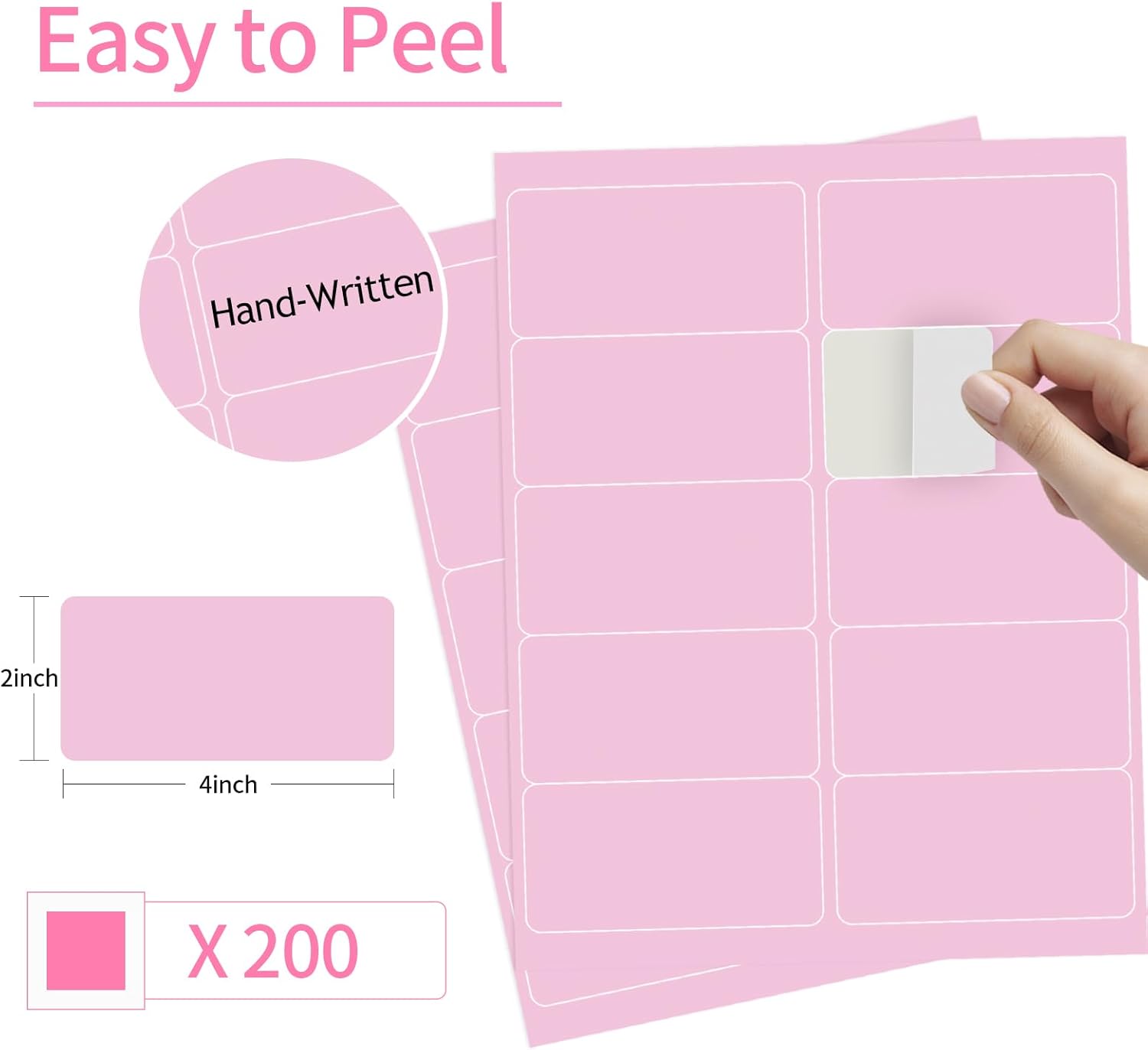- Label Size: Matte Pink-2" x 4", Sheet Size: 8.5" x 11". 20 sheets, Totally 200 labels