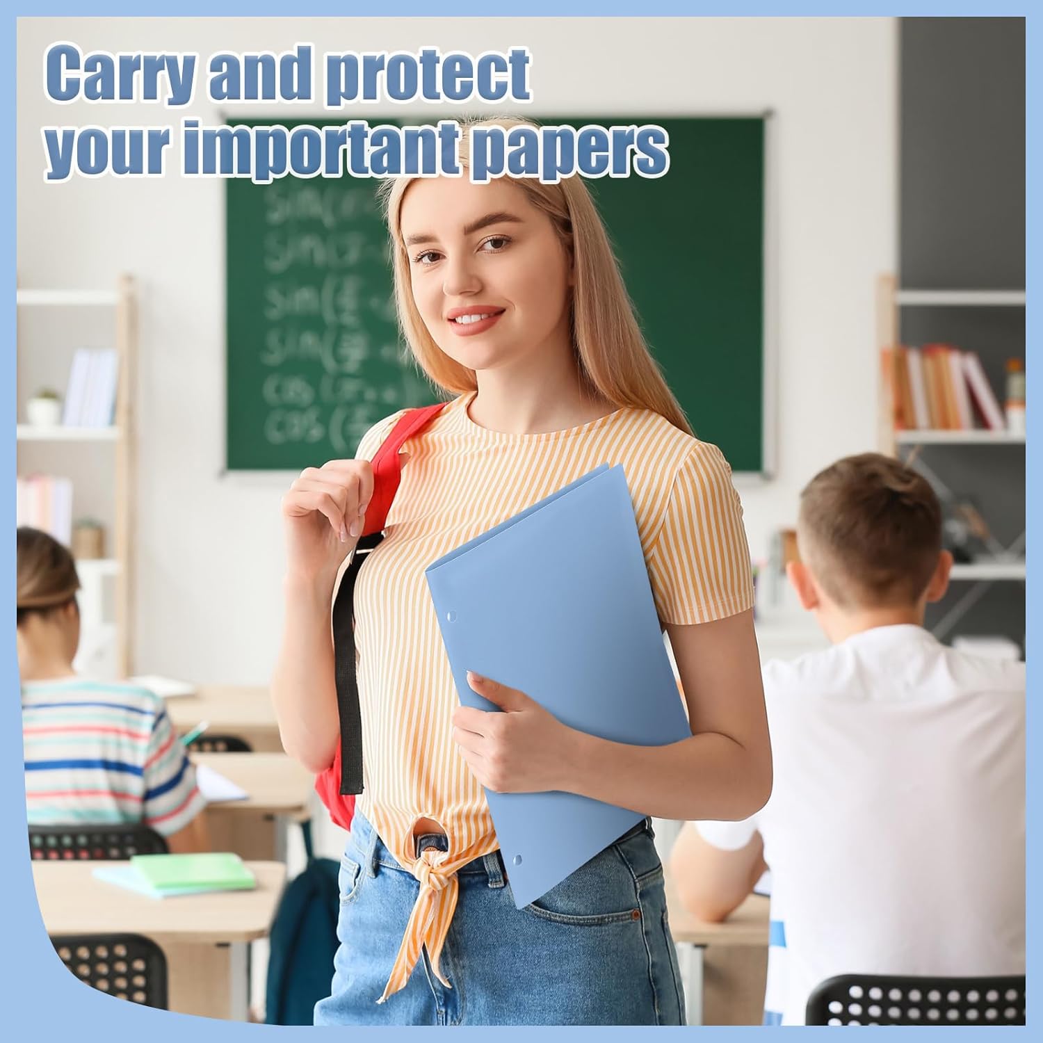- Enough Quantity to Use and Replace: you will receive 100 pieces haze blue plastic pocket folders, each with 3 holes and 2 pockets, fitting 3 ring binders and 8.5 x 11 inch letter size paper; Each pocket easily and neatly stacks 50 pages of letter size paper