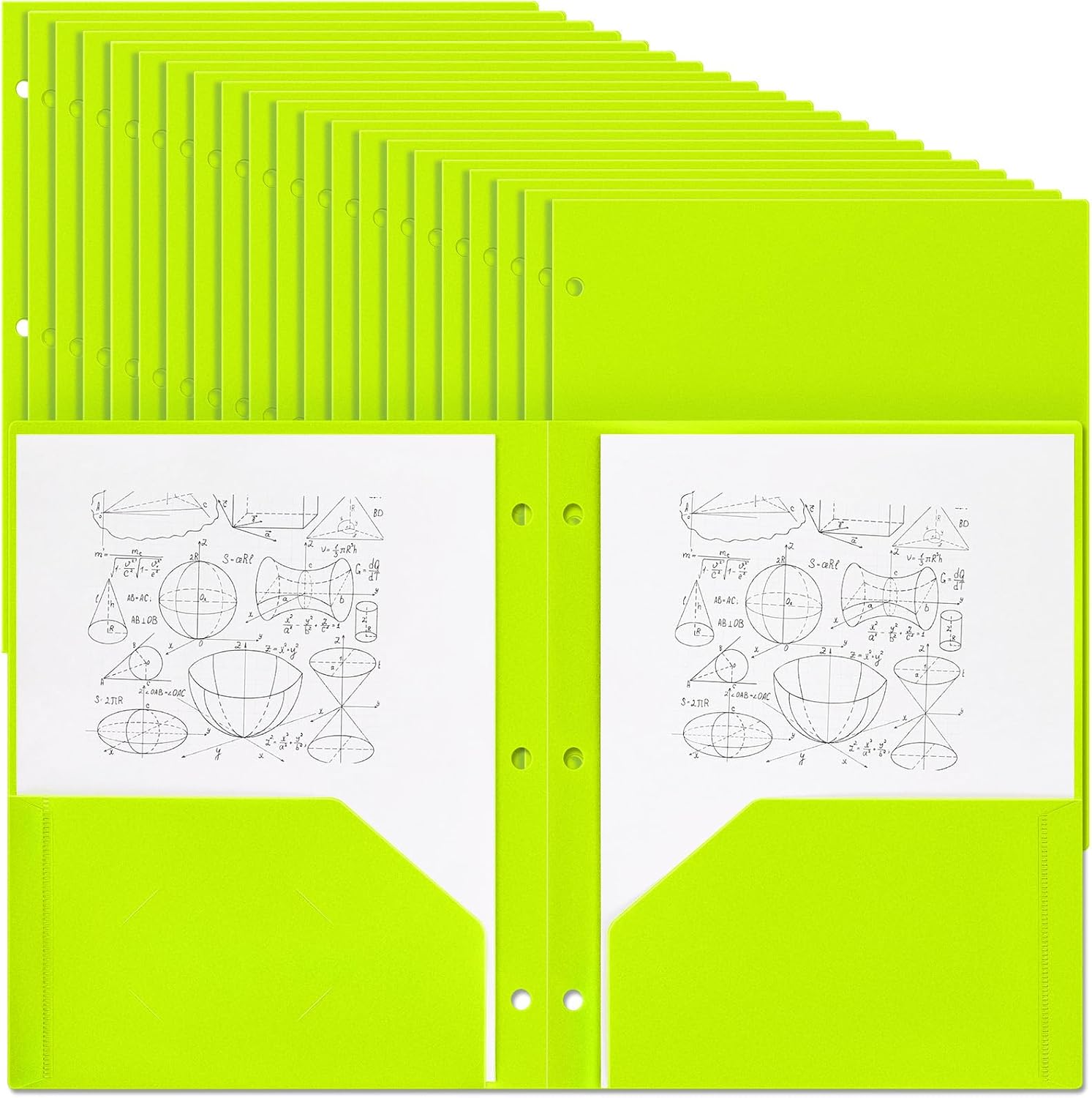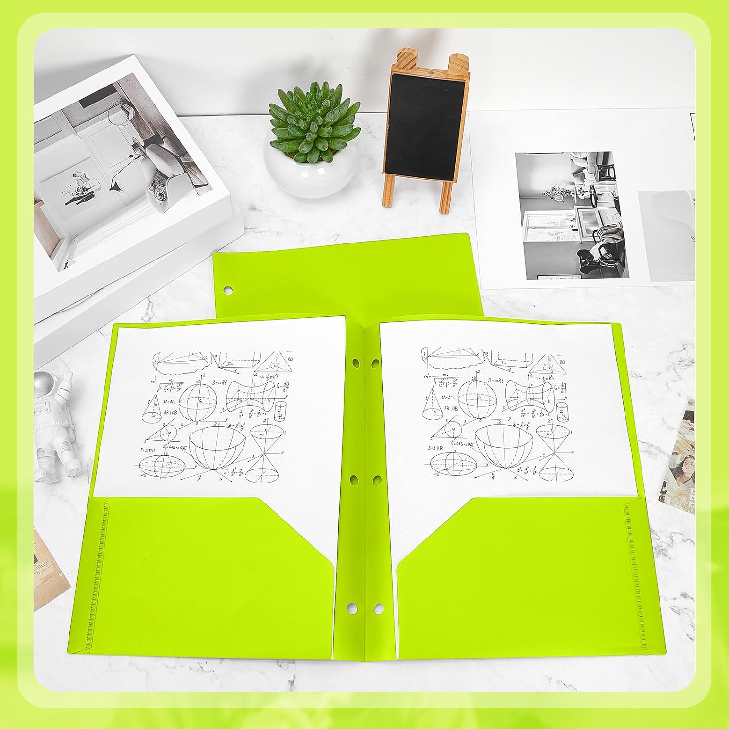- Enough Quantity to Use and Replace: you will receive 100 pieces fluorescent green plastic pocket folders, each with 3 holes and 2 pockets, fitting 3 ring binders and 8.5 x 11 inch letter size paper; Each pocket easily and neatly stacks 50 pages of letter size paper