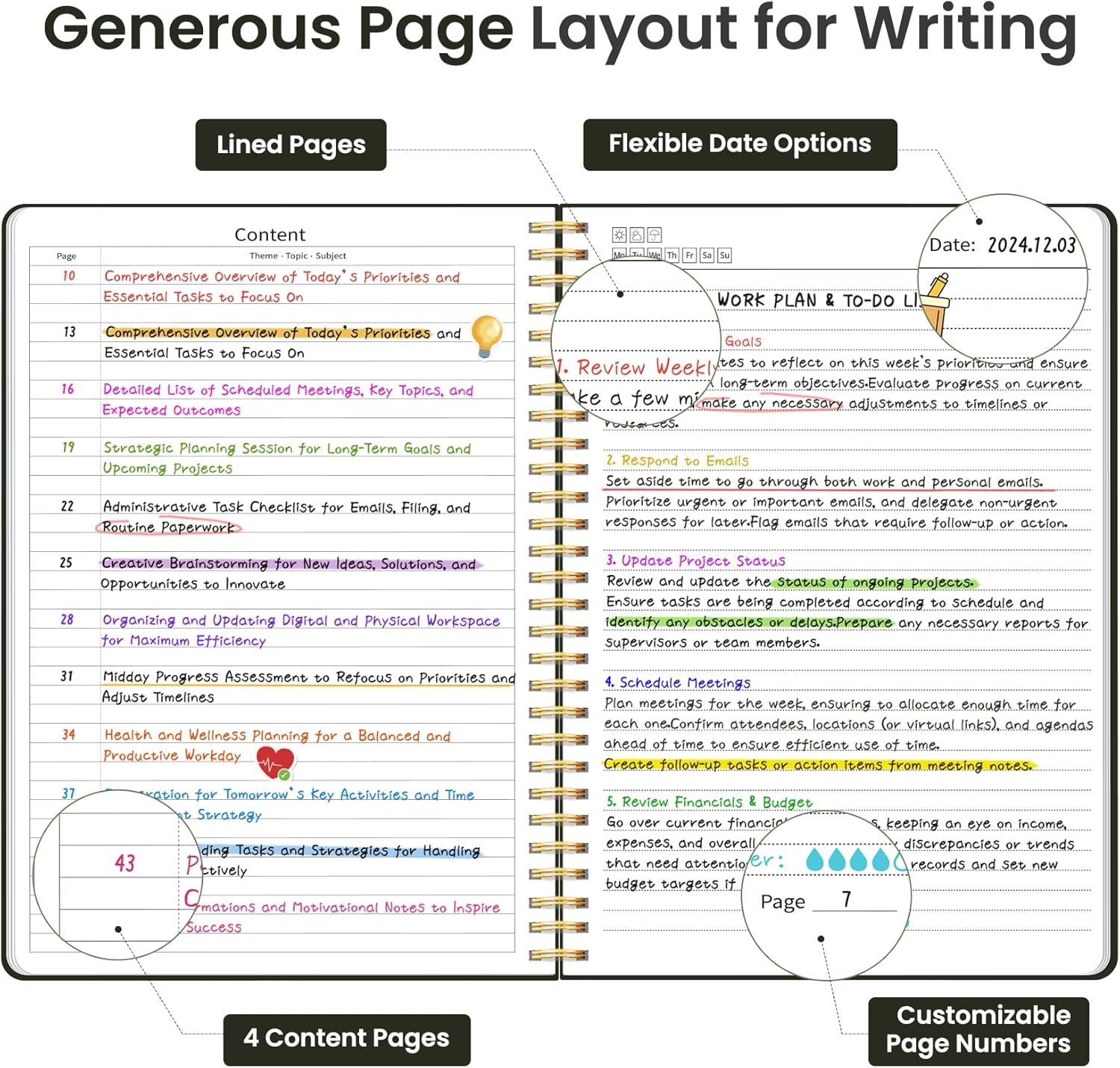 - Large A4 Spiral Notebook: Measuring 8.5" x 11" with standard 7mm college-ruled lines, this large A4 notebook offers ample space for detailed note-taking, journaling, and task management. Its spacious pages are perfect for capturing ideas, organizing thoughts, and managing projects—whether at work, school, or in your home office.
