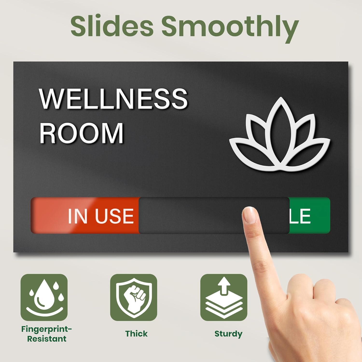 Wellness Room Sign, Do Not Disturb Office Door Signs, Available In Use Sign, Privacy Sliding Door Signs Tell Whether Wellness Room Vacant or Occupied