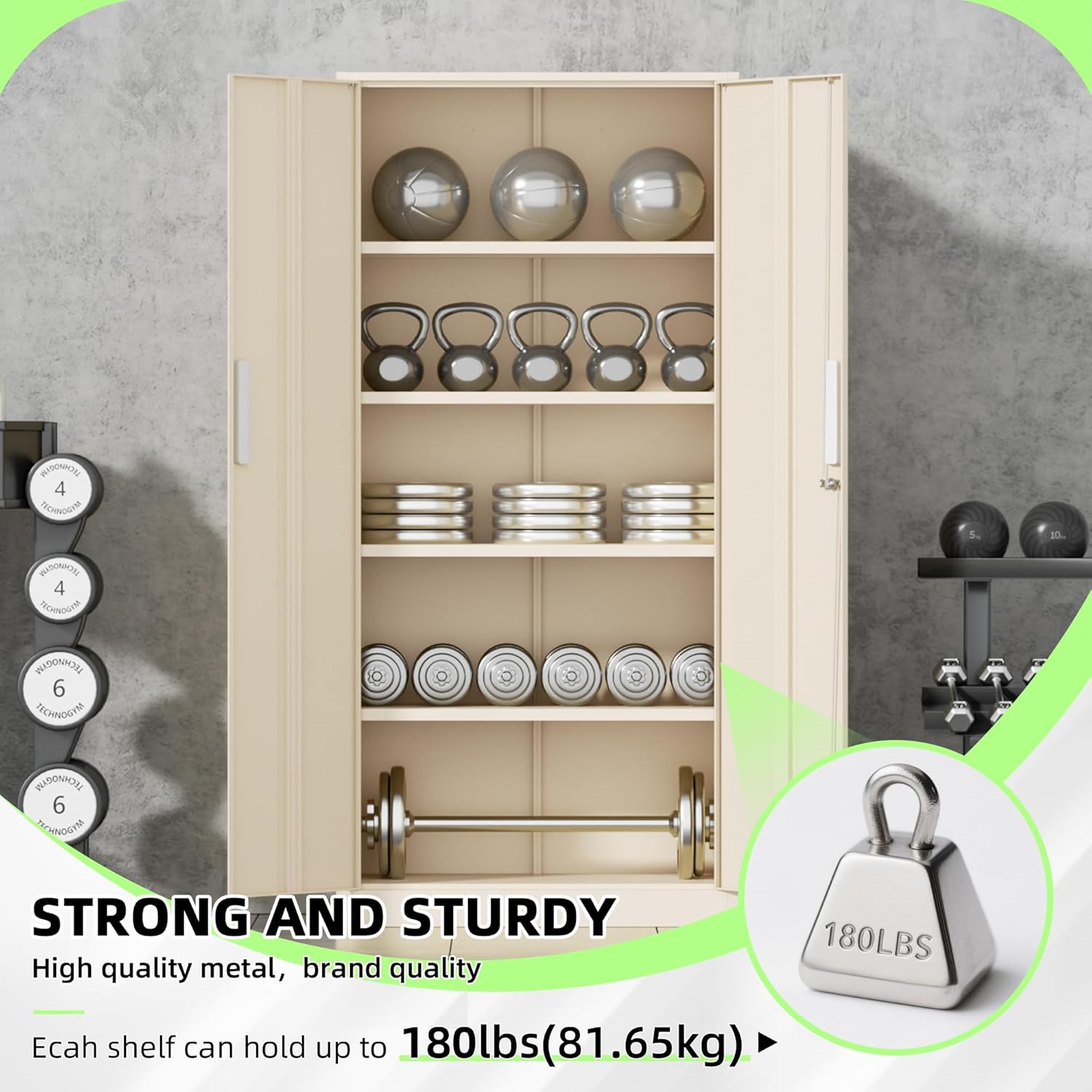 - 『900 lbs Load Capacity』: Metal storage cabinets are constructed of 0.88 mm thick cold rolled steel and can hold up to 180 lbs per tier, with a maximum load of 900 lbs! It's a 72 X 32 X 16 inch heavy duty storage cabinet.