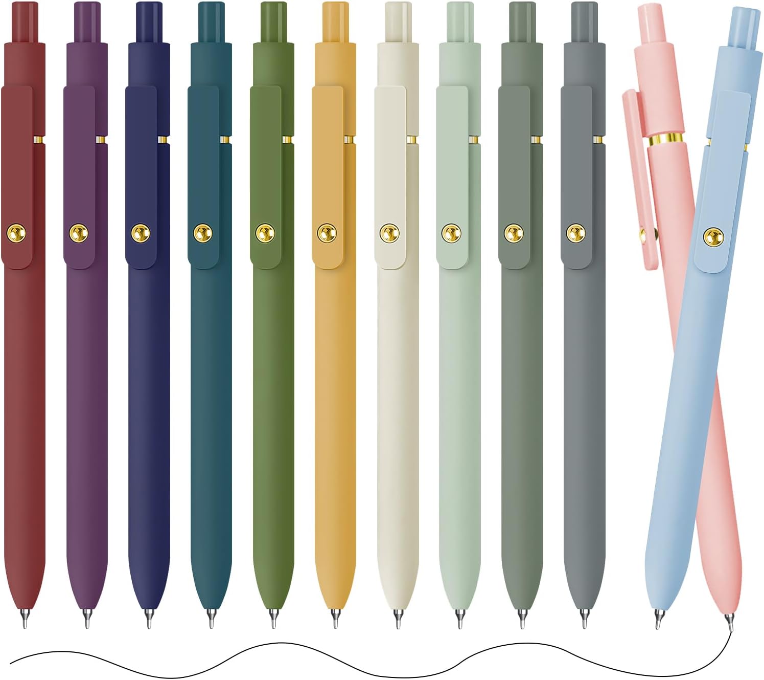Gel Pens, 12 Pack Gold Retro and Gold Morandi 0.5mm Black Ink Pens Fine Point Smooth Writing Pens for School Office Supplies, Gifts for Women Girls