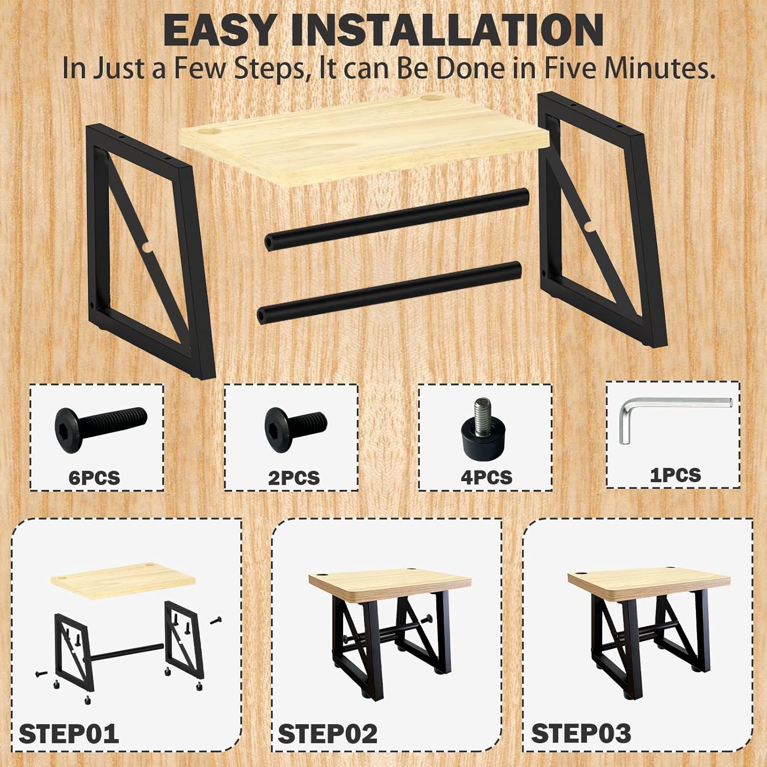 - Strong Construction & Long Lasting Durability: Made of high quality solid wood boards up to 0.6 inches thick and high-strength metal iron, it can hold up to 50 pounds, and the bottom is equipped with 4 height-adjustable non-slip pads to keep the product balanced and stable.
