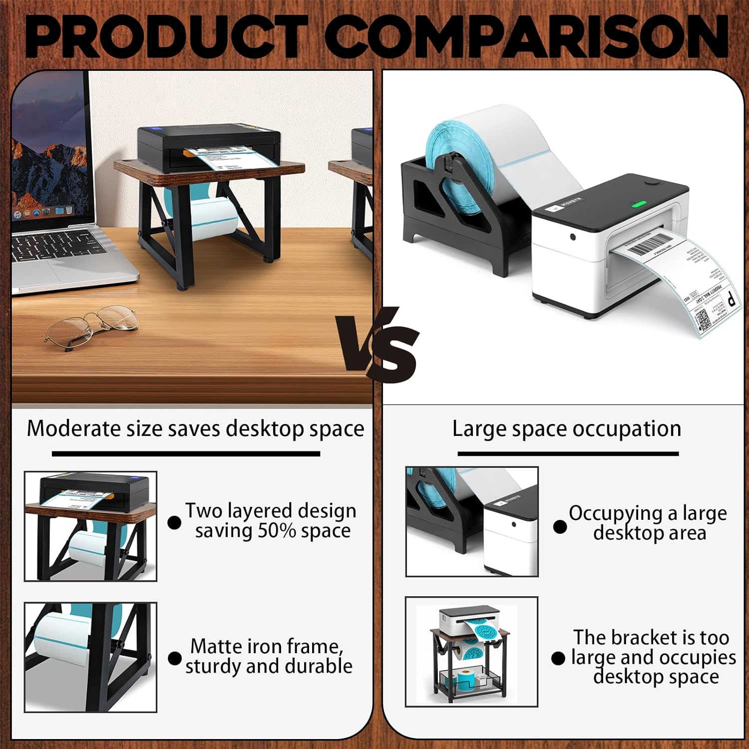 - All-in-One Label Holder: The XINQIDAI label stand accommodates both printers and labels. The top tier features slots on both sides for concealing power cords, while the lower tier includes a metal rod for mounting label rolls. Ensures an organized workspace.The length of the product pole is sufficient, the side bracket is installed against the inside, please install correctly!