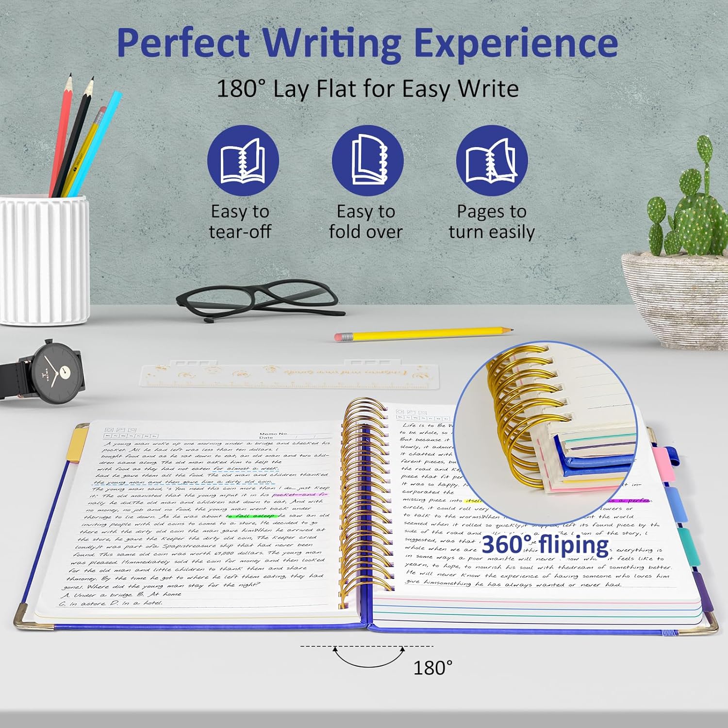 - Upgraded Design & Enhanced Functionality: Features a sturdy gold-color twin-wire spiral binding for effortless page turning and secure retention. The elastic band helps keep pages fixed and marked. Streamlined organization is facilitated by double-sided headers with “Weather,” “Week,” “Memo No,” and “Date” for quick notation. Includes a discreet inner back pocket for important cards or notes, plus a built-in 6-inch ruler for precise sketching, graphing, keeping essentials organized and protected.