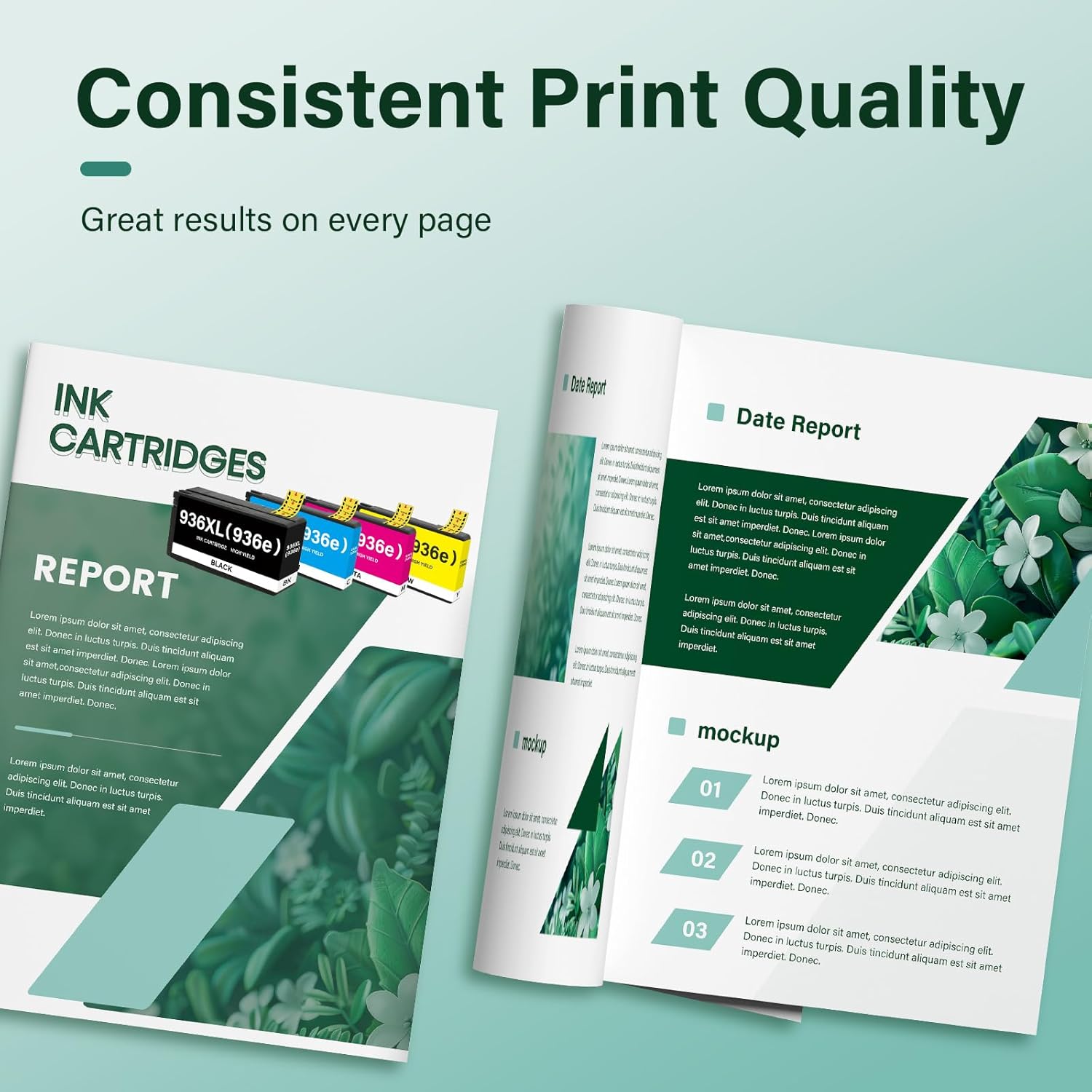 - High Page Yield: It yields up to 2,500 pages for each 936XL Black Ink and 1,650 pages for each 936XL Color Ink at 5% coverage (A4e letter)