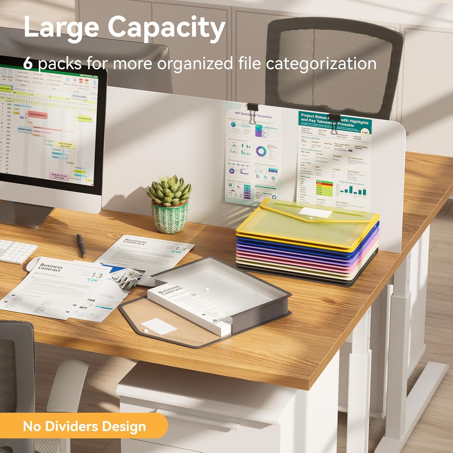 - 【Colorful Transparent Overflowing Document Folder】Six Pack Plastic Wallet Folder extra roomy at 12.7"×9.8", roomier than A4, with roomy expansion of 2.8" for a whopping 1000 sheets capacity. 6 concoction of vibrant colors: Blue,Yellow,Green,Black,Orange,Red, making categorizing a delightfully different experience.