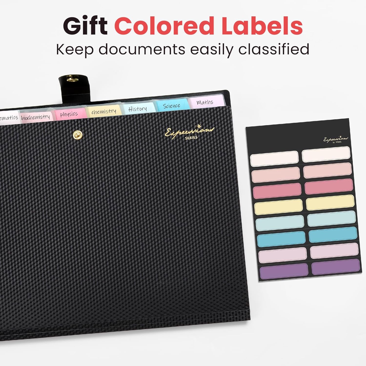 - Easy Organization: This expanding file folder makes sorting and organizing your papers a breeze. Featuring 8 pockets with tabs and colorful labels for quick sorting and retrieval