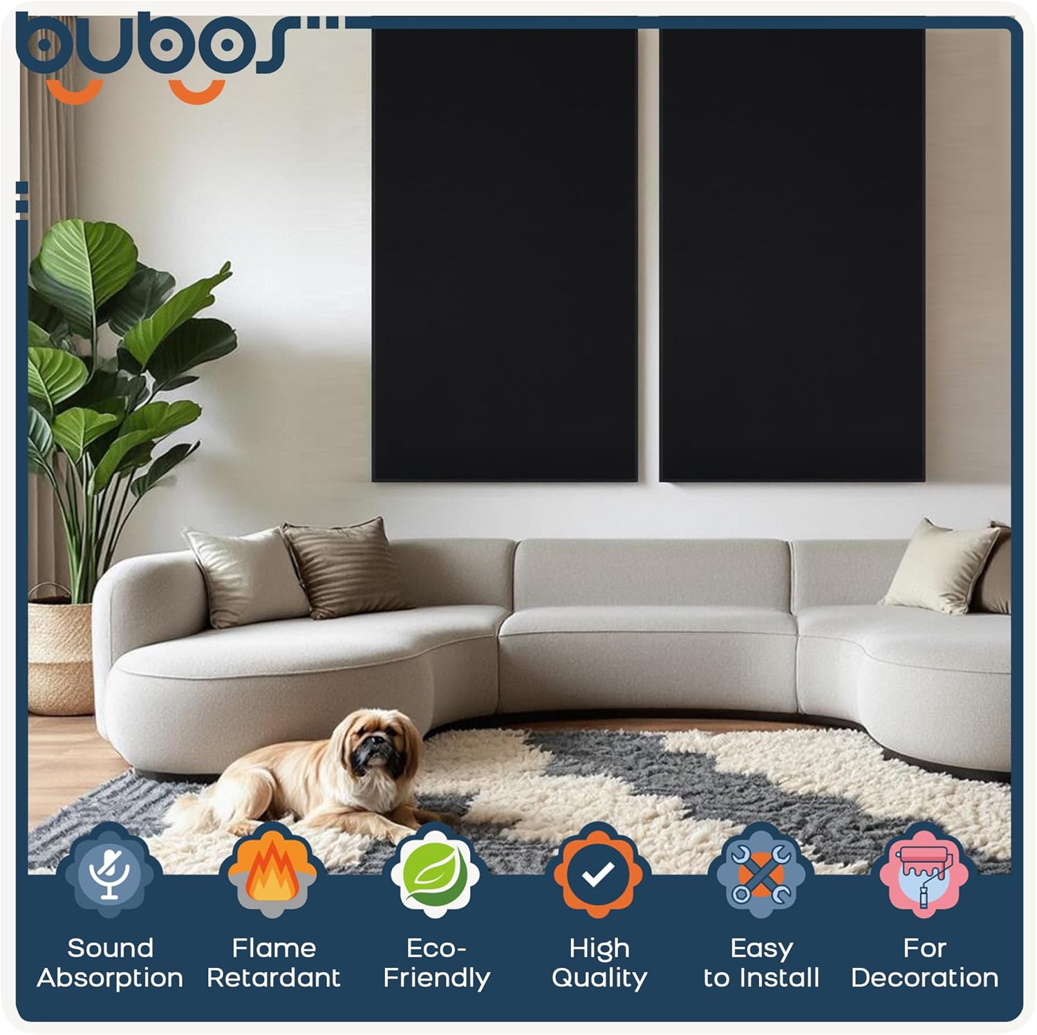 BUBOS 2 PCS Fabric Acoustic Panels,47.2''x23.6'' Decorative Sound Dampening Panels, Art Large Acoustic Wall Panels for Studios, Office, Home Theater,Super CavityPro Balck