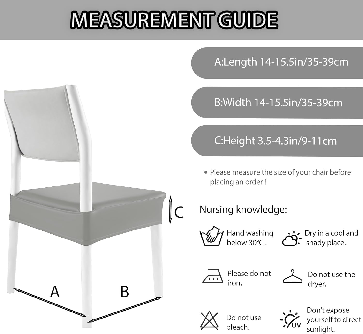 - Premium Fabric:CWK dining chair cover seat is made of artificial leather, which is easy to wear and secure. PU fabric has strong elasticity and good resilience, making it more suitable for making dining chairs. PU fabric has a waterproof effect, which protects it from daily leakage and dirt, making it very easy to maintain.