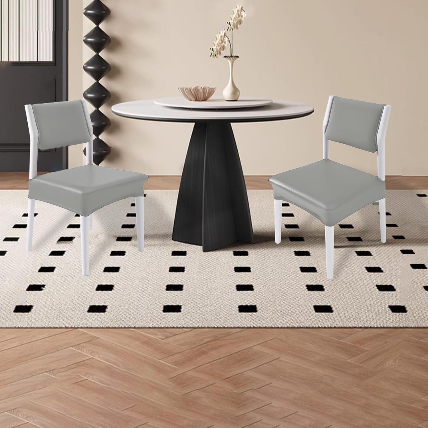 CWK Waterproof PU Leather Dining Chair Covers Set of 2-Stretchable Chair Seat Slipcovers, Removable & Washable Protector for Dining Room,Home,Office,Wedding,Rear Covers (PU-Silver)