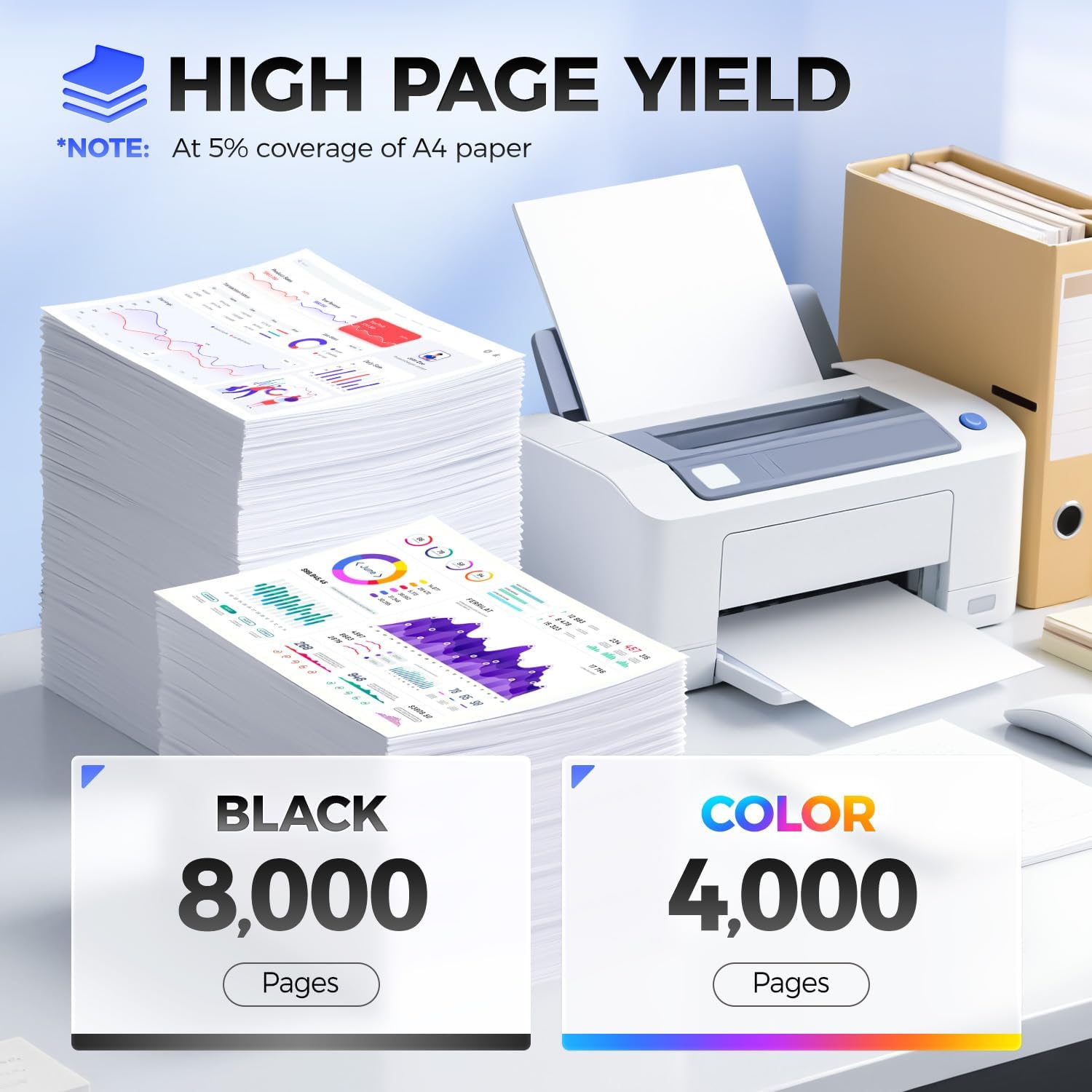 - High Page Yield: Up to 8,000 pages per black Toner Cartridge,up to 4,000 pages per color (at 5% coverage of A4 Paper),High Yield Version 70C1XK0 70C1XC0 70C1XM0 70C1XY0 Toner Cartridge.