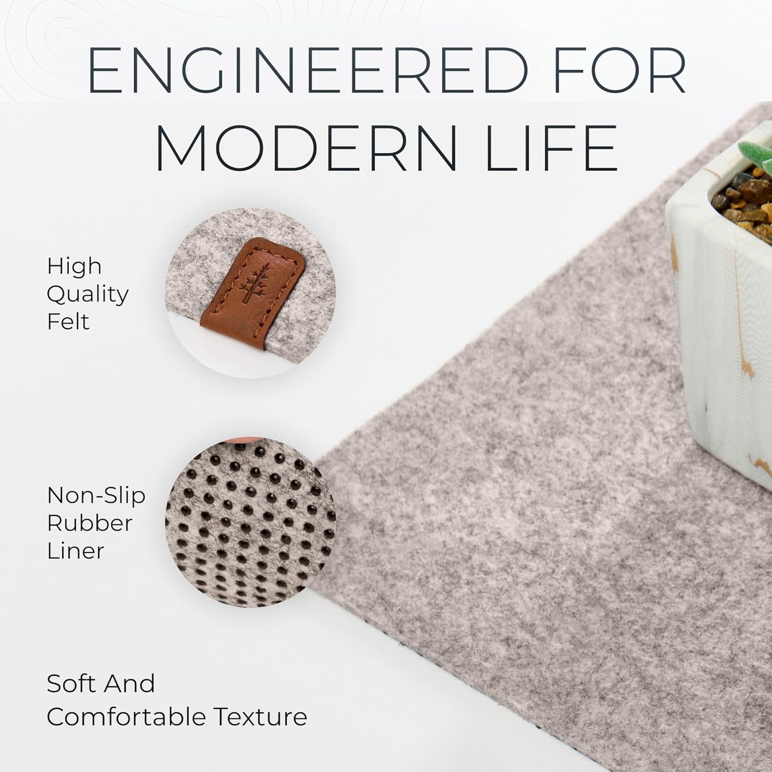 - Crafted from premium, soft, and warm felt without stitching for a seamless look, featuring anti-slip rubber drip dots to ensure the mat stays in place, enhancing desk stability and user experience.