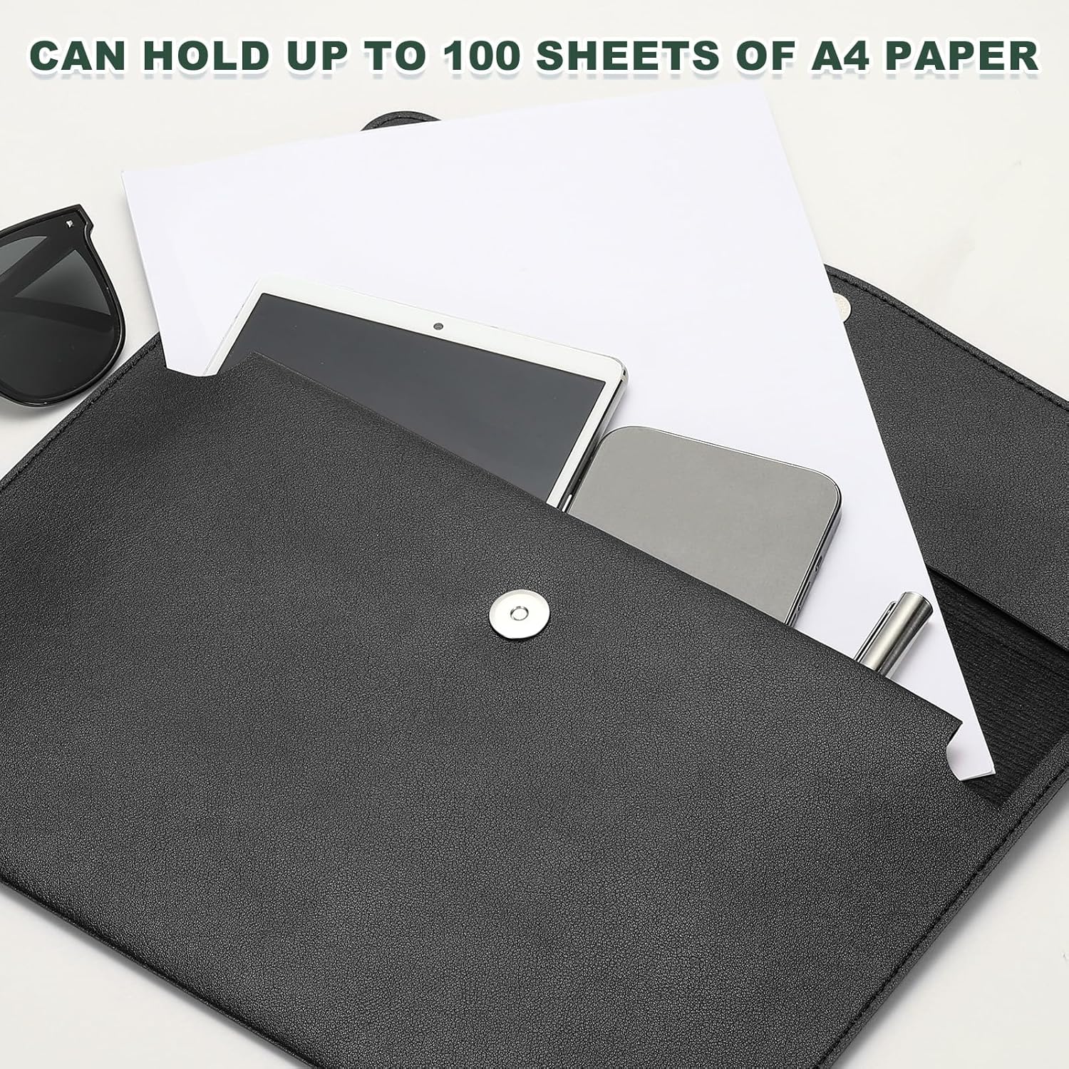 - Advantage: The PU leather material offers a luxurious look and feel. The document folder is easy to clean and maintain, ensuring that it retains its pristine appearance over time. Equipped with a secure snap button closure mechanism, the file folder ensures that your documents remain safe and protected during transport or storage.