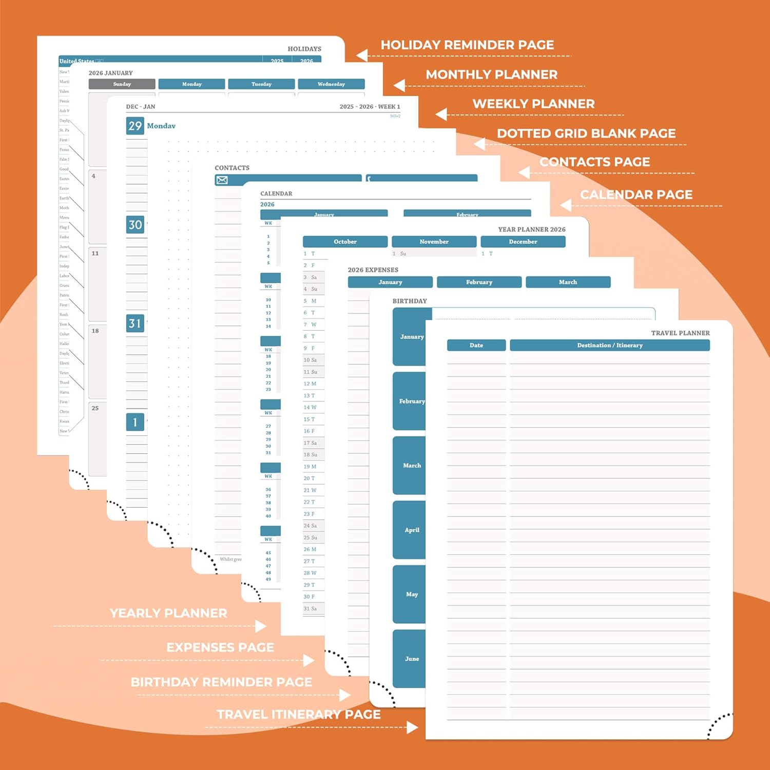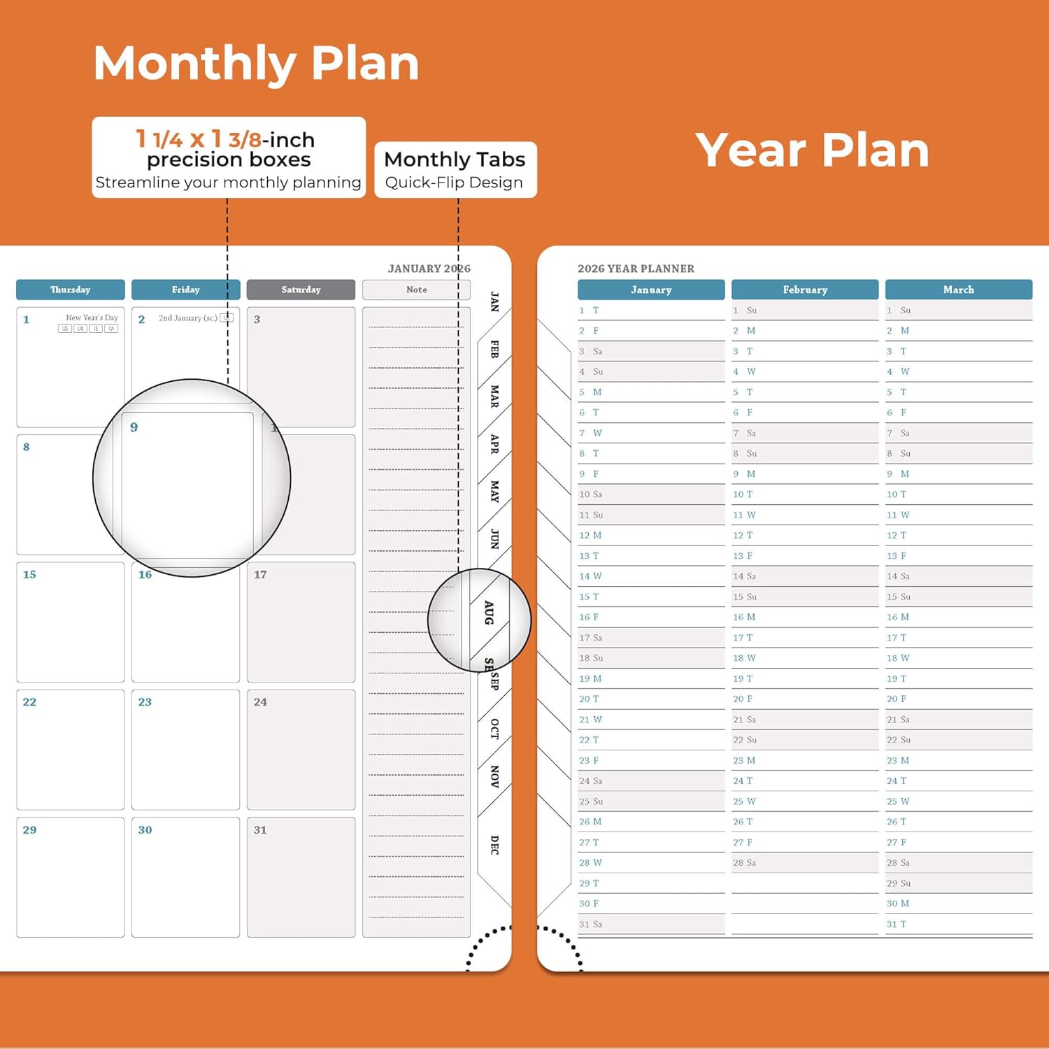 - Monthly Planner: Covers Jan.2026-Dec.2026. It adopts a double-page design for one week, so you can get a general overview without turning pages. The weekly planner page provides writing space for arrangement of daily tasks, priority management and activity records; the left side of the monthly plan marks important dates, and the right side plans special tasks