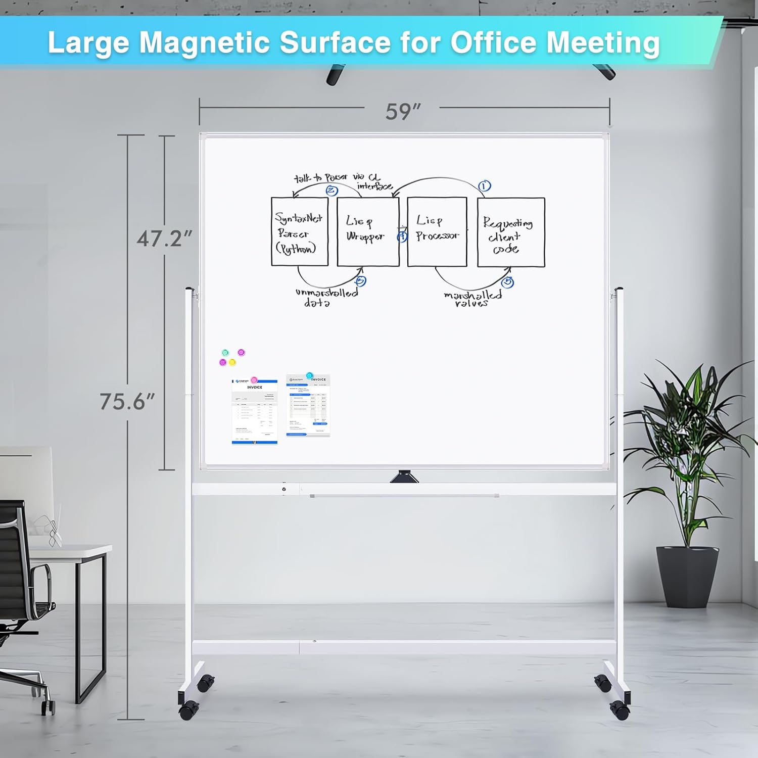 - Large Space for Writing: 60 x 48 inches whiteboard on wheels offers plenty of space for displaying ideas, teaching lessons, or making presentations at work. Even two people can work together concurrently with the large double-sided whiteboard. Each white board on wheels has a length of 48 inches marker tray, offering plenty of room to keep your writing supplies organized and close at hand. Get a much more comfortable writing and wiping experience with maxtek rolling white board