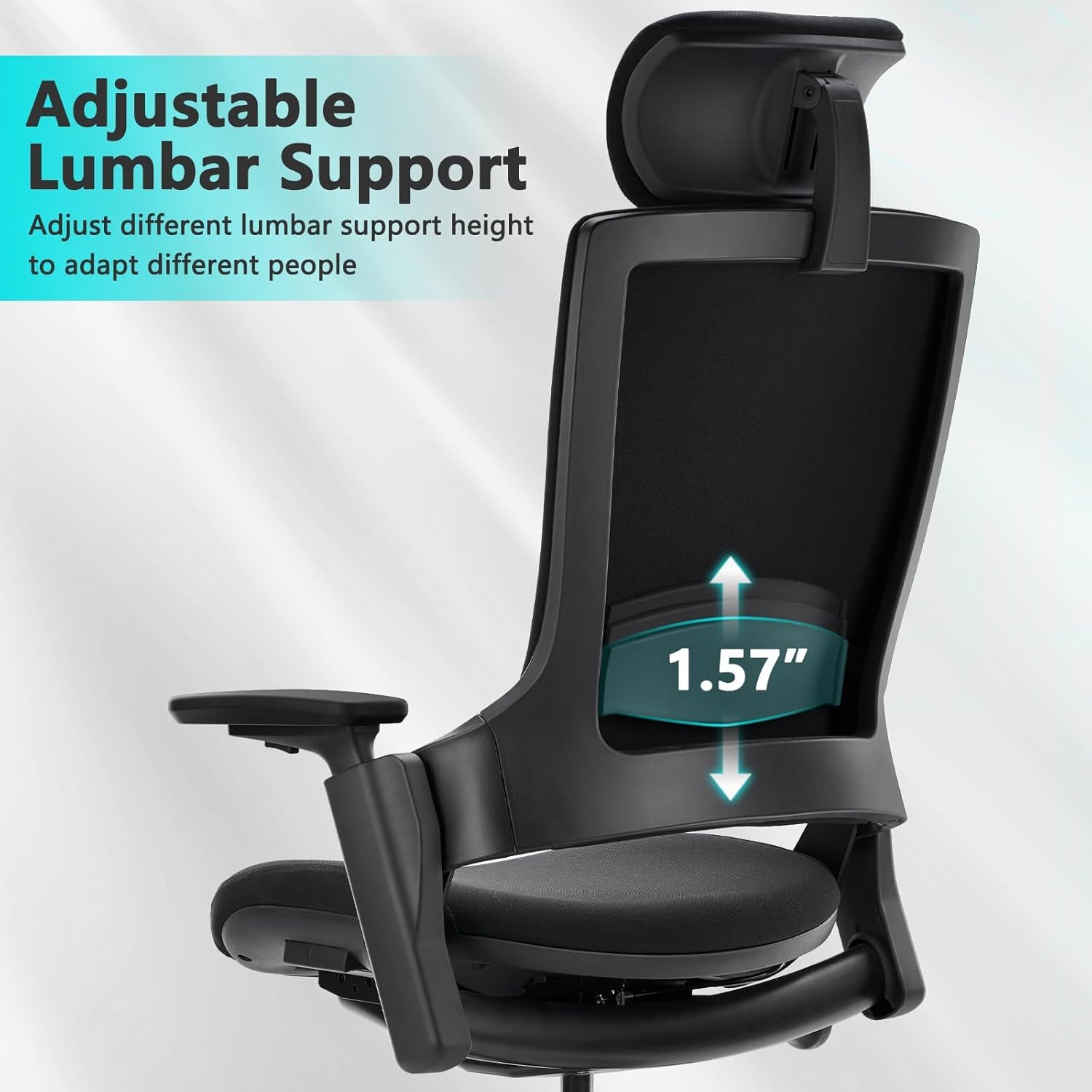 CLATINA Ergonomic High Swivel Executive Chair with Adjustable Height Head 3D Arm Rest Lumbar Support and Upholstered Back for Home Office Studio, Black Fabric, 2 Pack