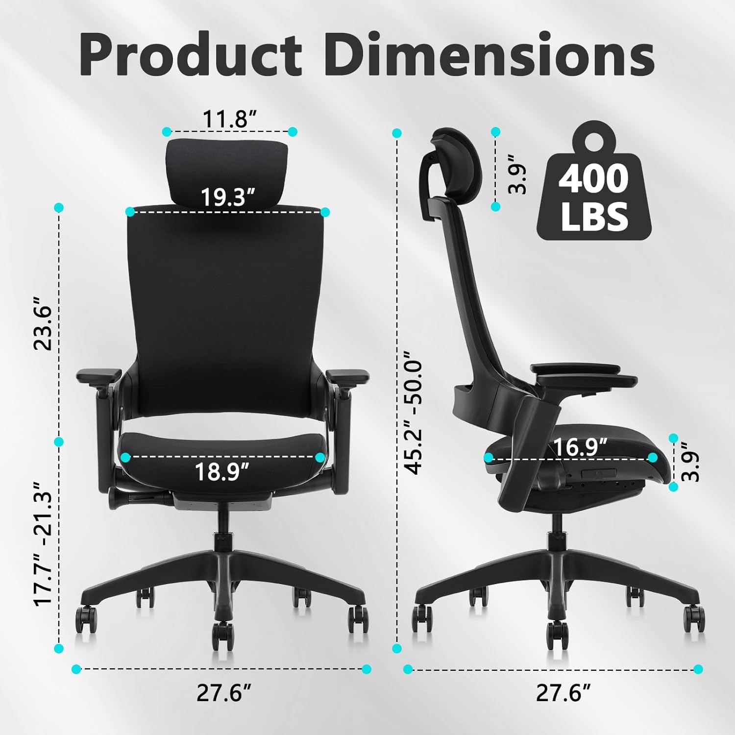 - Fully Adjustment Design Office Chair: 3D Adjustable ergonomic computer chair ,You can adjust the seat height and depth, the armrest height and angle, the lumbar support height, the backrest tilt angles and tilt tension. All these designs aim to help you find a comfortable sitting position just for you.