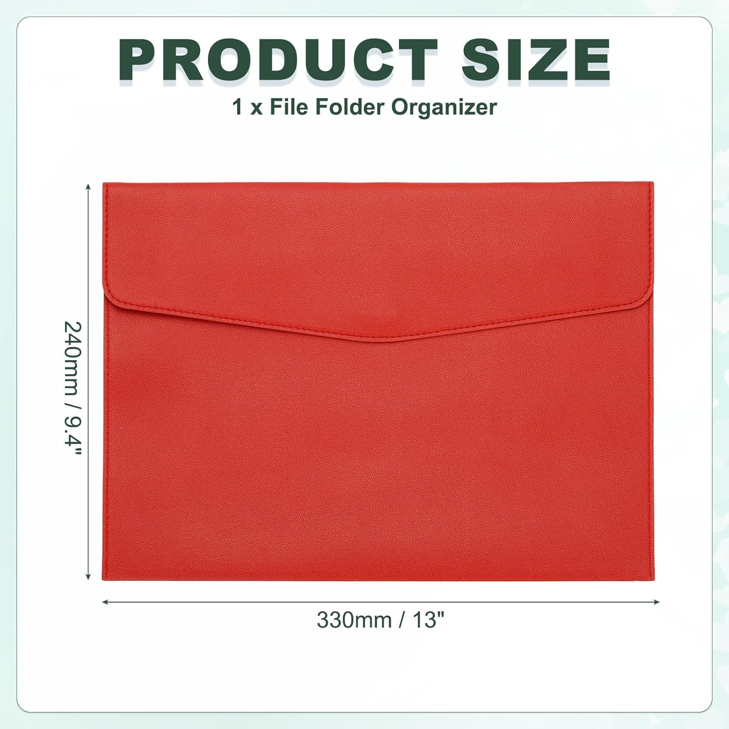- Color: Red; Material: PU Leather; Size: 330 x 240mm / 13 x 9.4 inch(L*W); Packing List: 1 x File Folder Organizer