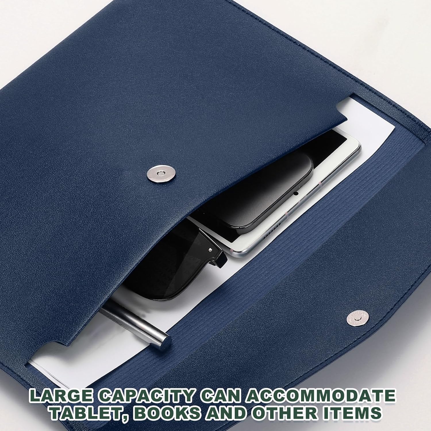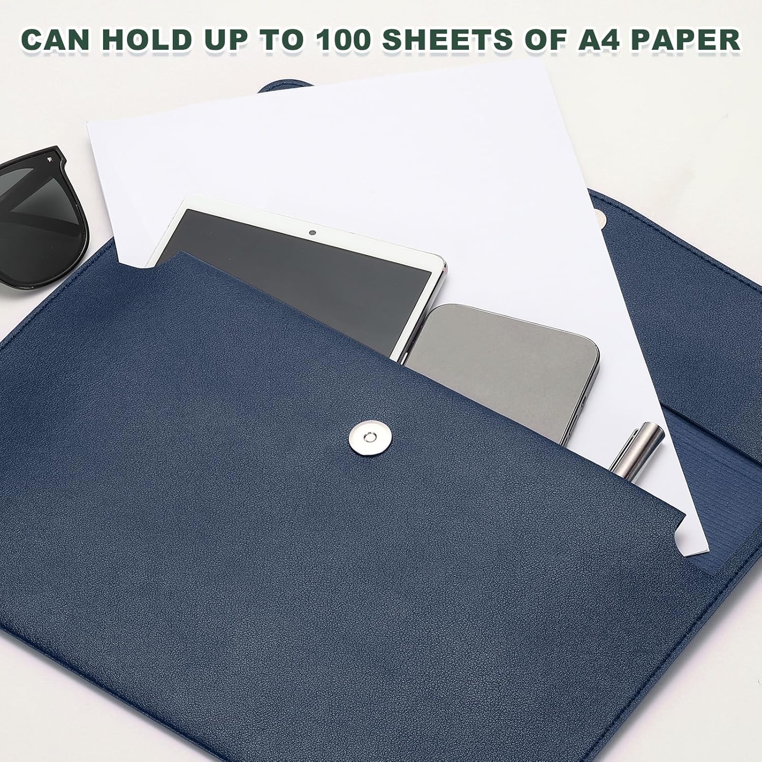 - Advantage: The PU leather material offers a luxurious look and feel. The document folder is easy to clean and maintain, ensuring that it retains its pristine appearance over time. Equipped with a secure snap button closure mechanism, the file folder ensures that your documents remain safe and protected during transport or storage.