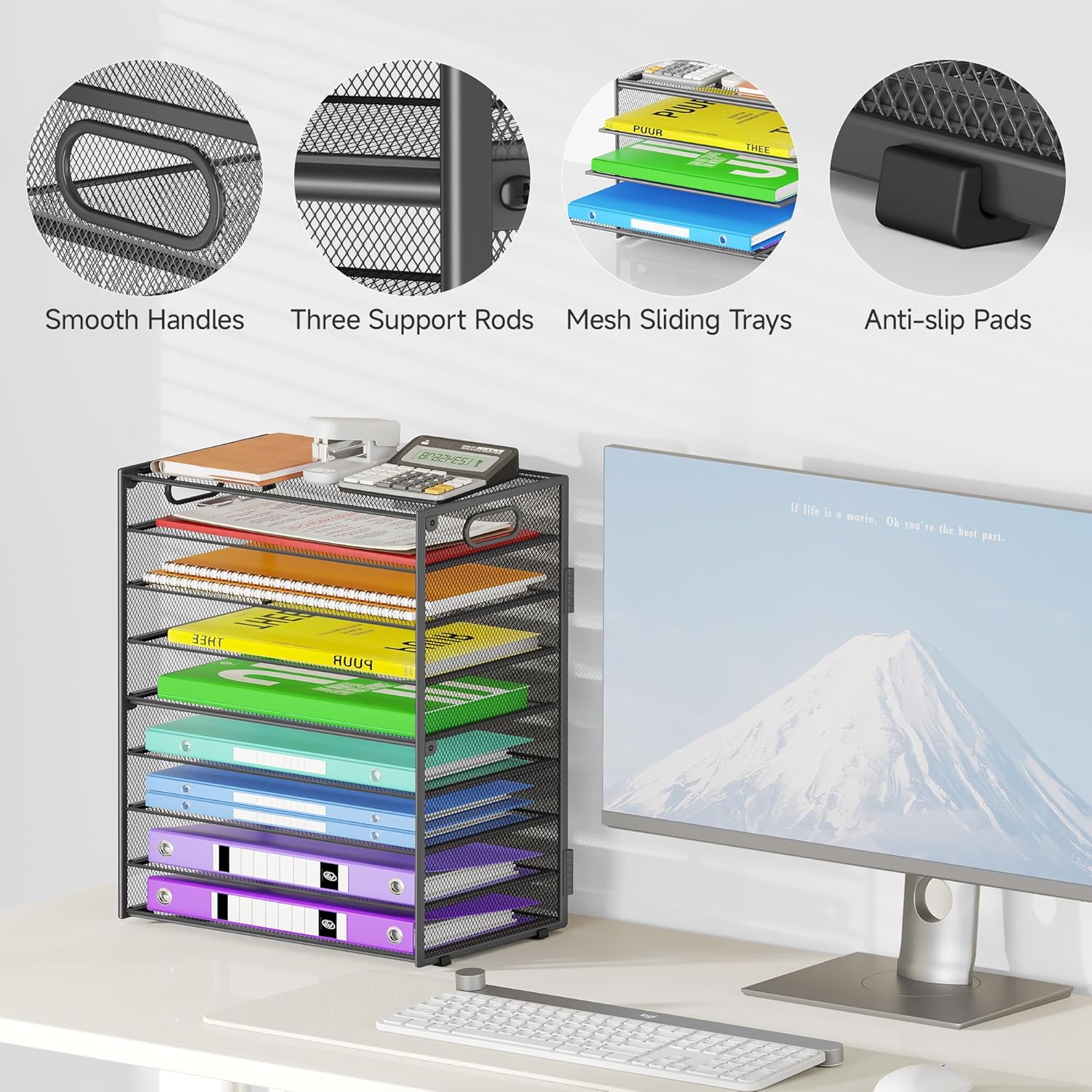 - 【EFFICIENT DESK ORGANIZER】This document organizer features sliding trays for easy access to your documents. Our desktop organizer comes with anti-slip feet, ensuring that it stays in place on your desk. It's also easy to move the file folder organizer with smooth handles.
