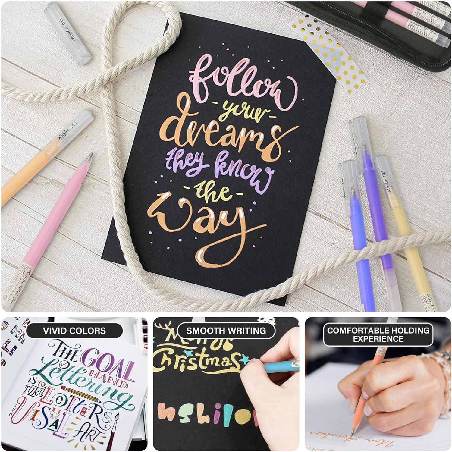 - Multi-Purpose: Writes on dark colored paper such as black paper, craft paper. Our Acrylic gel pens for detail drawing sketching, illustration, card making, scrapbook and other projects. Great for art-loving people, artists and beginners.Beautiful gift for a Birthday, Anniversary, Halloween, Thanksgiving, Christmas.