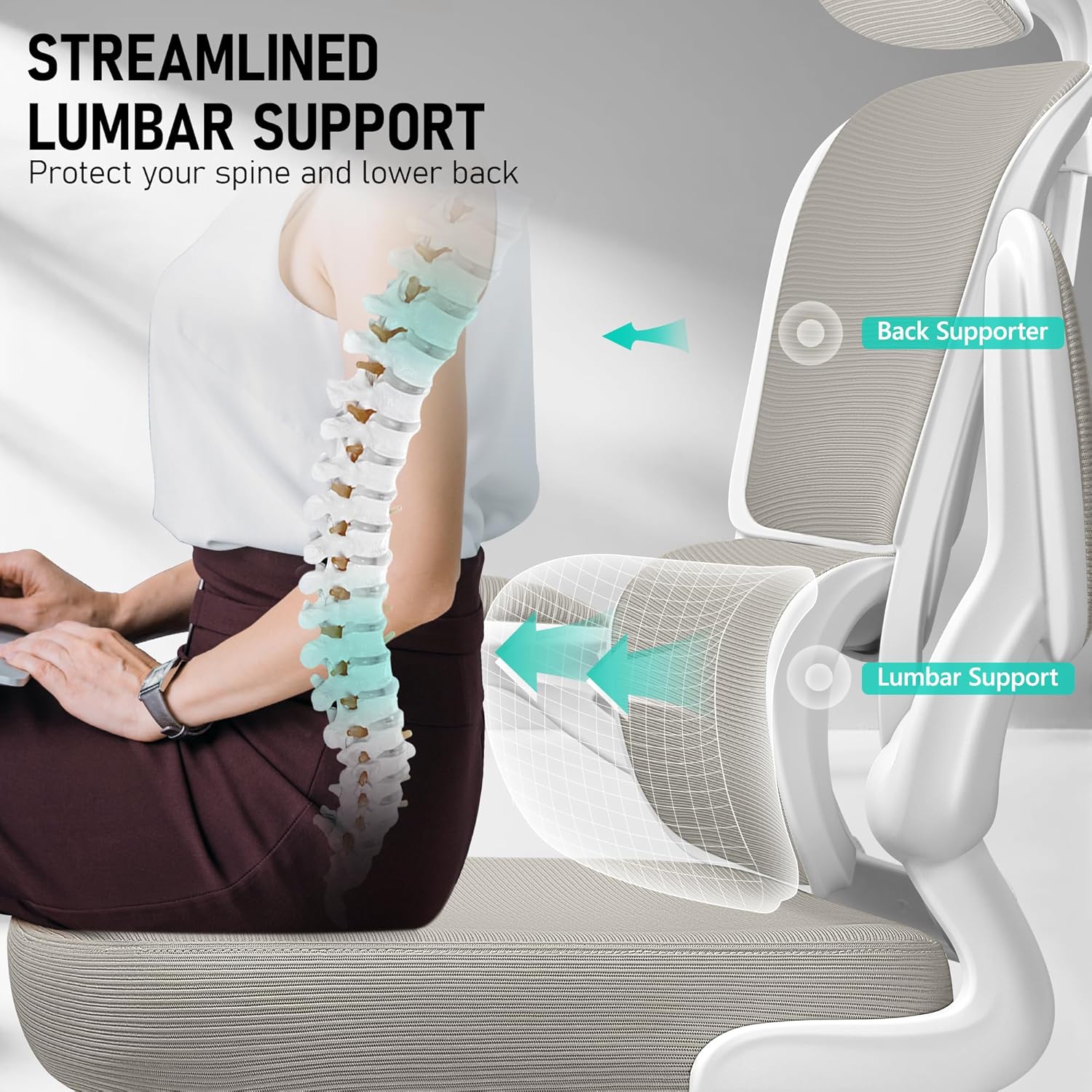 - 【Ergonomic Lumbar Support for Optimal Comfort】This high-back ergonomic office chair is designed with targeted lumbar support that aligns with the natural curve of your spine. The backrest with separate lumbar support can actively fit your waist, providing scientific ergonomic support to reduce back pain during long hours of sitting.