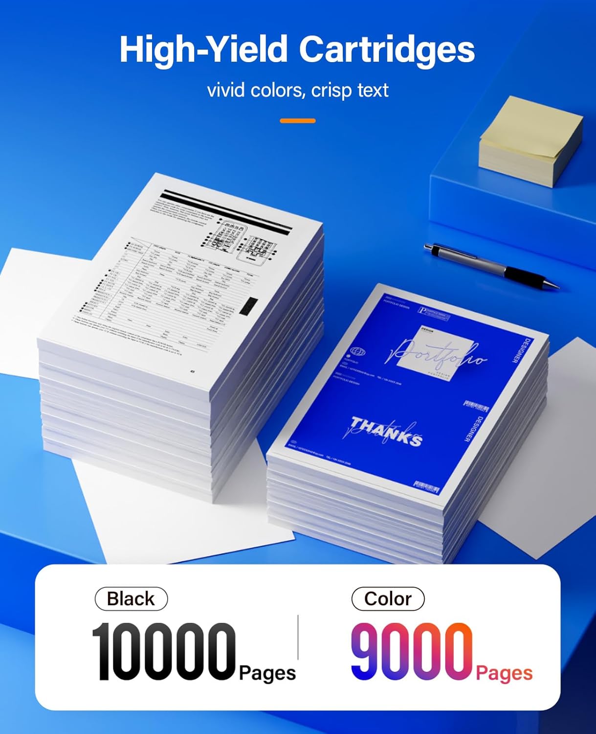 - High Page Yield: 10,000 pages for Black and 9,000 pages for Color toner cartridge (Letter/A4, at 5% coverage)