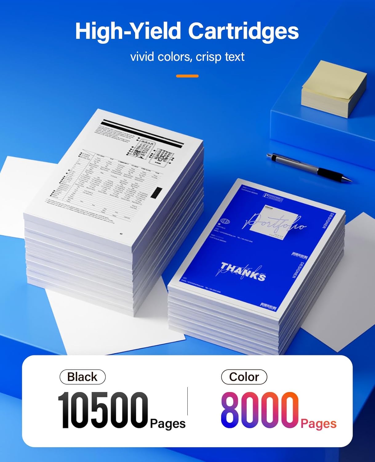 - High Page Yield: 8,000 pages for Black and 10,500 pages for Color toner cartridge (Letter/A4, at 5% coverage)