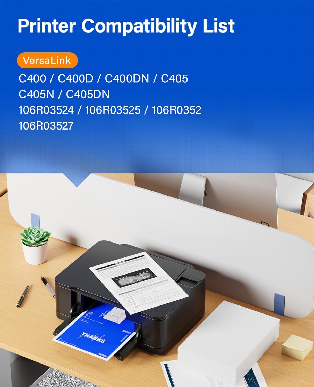 - Compatible Devices : Compatible for Xerox Versalink:C400,C400D,C400DN, C405,C405N,C405DN, Compatible Toner Model:106R03524,106R03525, 106R03526,106R03527 Compatible for Xerox Versalink:C400,C400D,C400DN, C405,C405N,C405DN, Compatible Toner Model:106R03524,106R03525, 106R03526,106R03527
