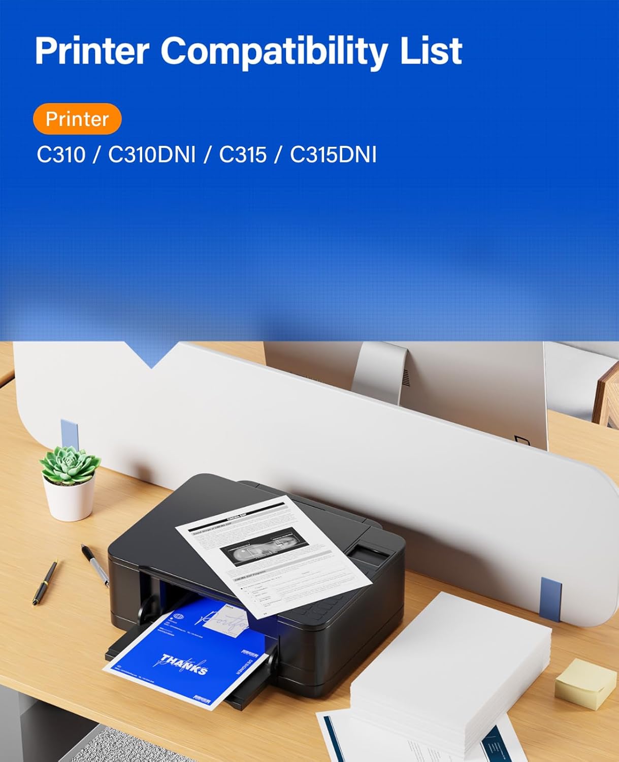 - Yield & Version: 3,000 pages per C310 C315 Black Toner Cartridge and 2,000 pages per C310 C315 Color Toner Cartridge(at 5% Coverage). High Yield Version C310 C315 toner cartridges.