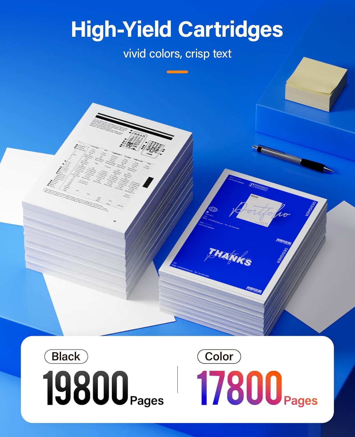 - High Page Yield: 19,800 pages for Black and 17,800 pages for Color toner cartridge (Letter/A4, at 5% coverage)