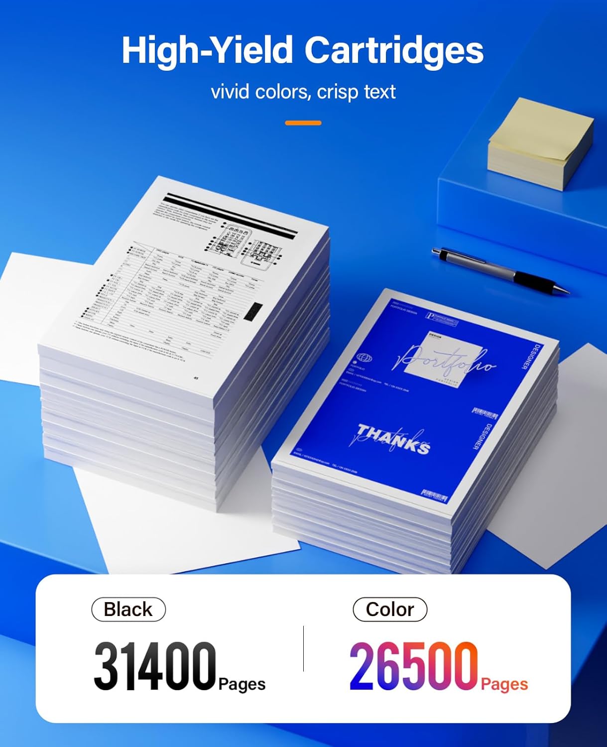- Yield & Version: 31,400 pages for Black and 26,500 pages Color toner cartridge (A4, 5% Coverage),High Yield Version C9000 toner cartridges.