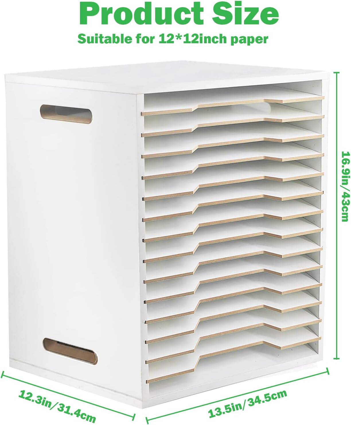 - Generous Paper Compatibility: Our wood scrapbook paper organizer has 15 layers, 16.6 inches deep × 13.3 inches wide × 12 inches high, maximizing the use of your desktop or storage space.Whether it is home, office or classroom, it can help you easily organize all kinds of papers, documents, notebooks and stationery, giving your work or study environment a new look and saying goodbye to clutter.