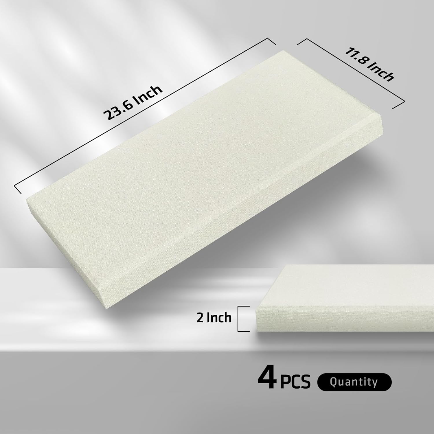 UMIACOUSTICS 4 PCS Acoustic Panels with Hanging Brackets, 2” Thick Fiberglass Sound Proof Panels Removable for Studios, Office, Home Theater Wall- Off White