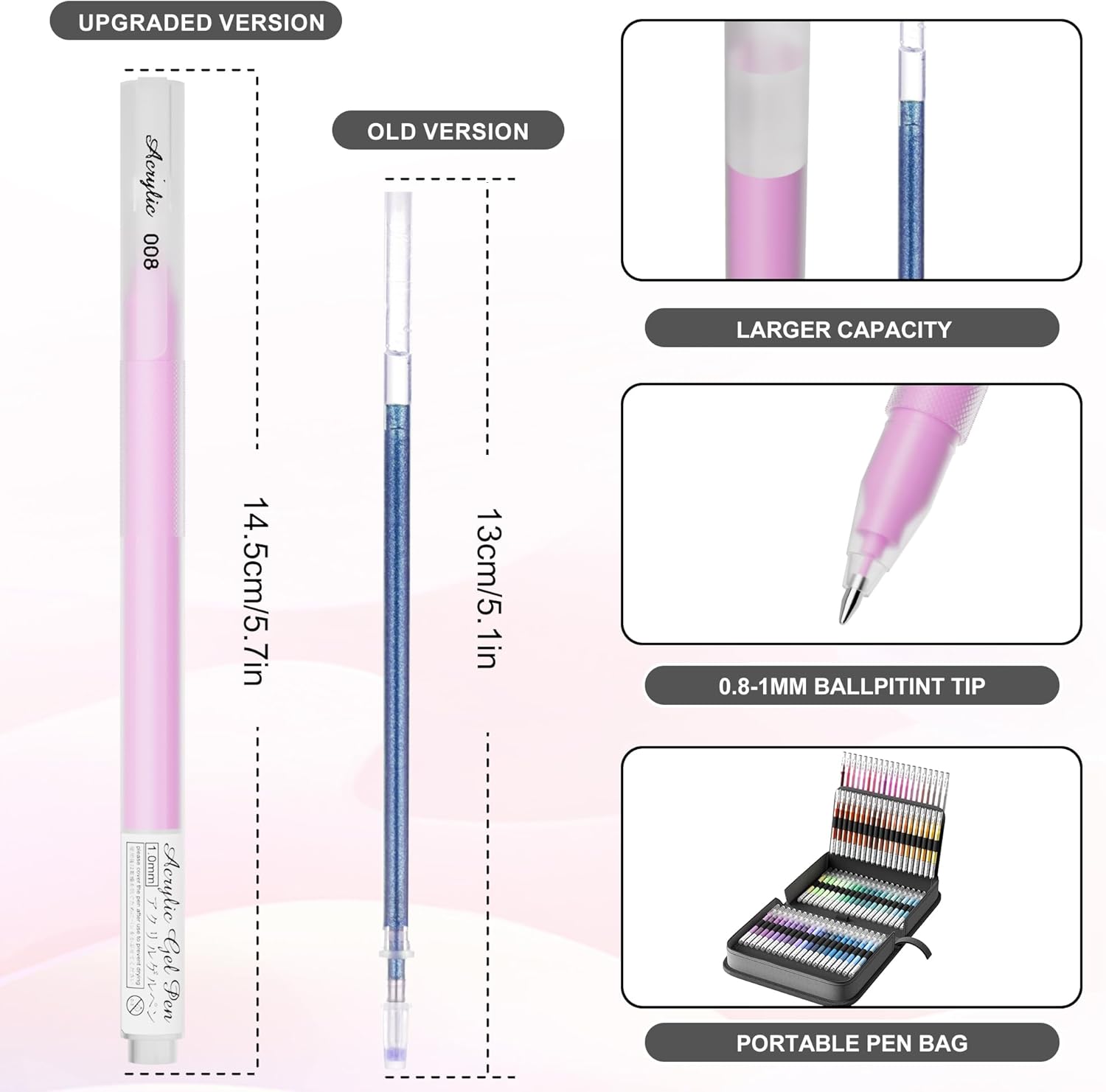 - [NEW DESIGN ACRYLIC PEN]๏ผ A revolutionary pen that combines the ease of use of a gel pen with the multi-color of acrylic paint. This innovative design features a bullet tip for precise and controlled application, ensuring your artistic imagination come to life with ease.This ink is specially formulated to provide a smooth, consistent flow, perfect for detailed work .