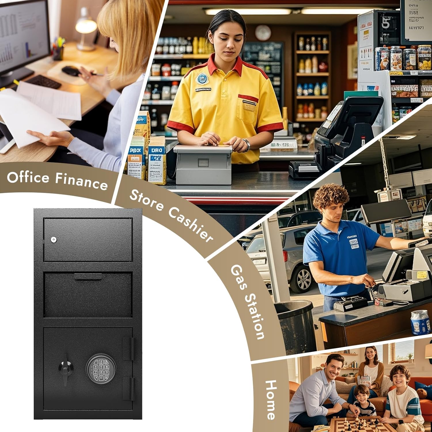 - Bonus Fireproof & Waterproof Bag : Money drop box provide added protection, this safe box for money includes a complimentary fireproof and waterproof bag, ideal for storing important items like cash, checks, passports, and sensitive files. Whether used as a home safe or business safe, it offers extra peace of mind in emergencies such as fires or floods.