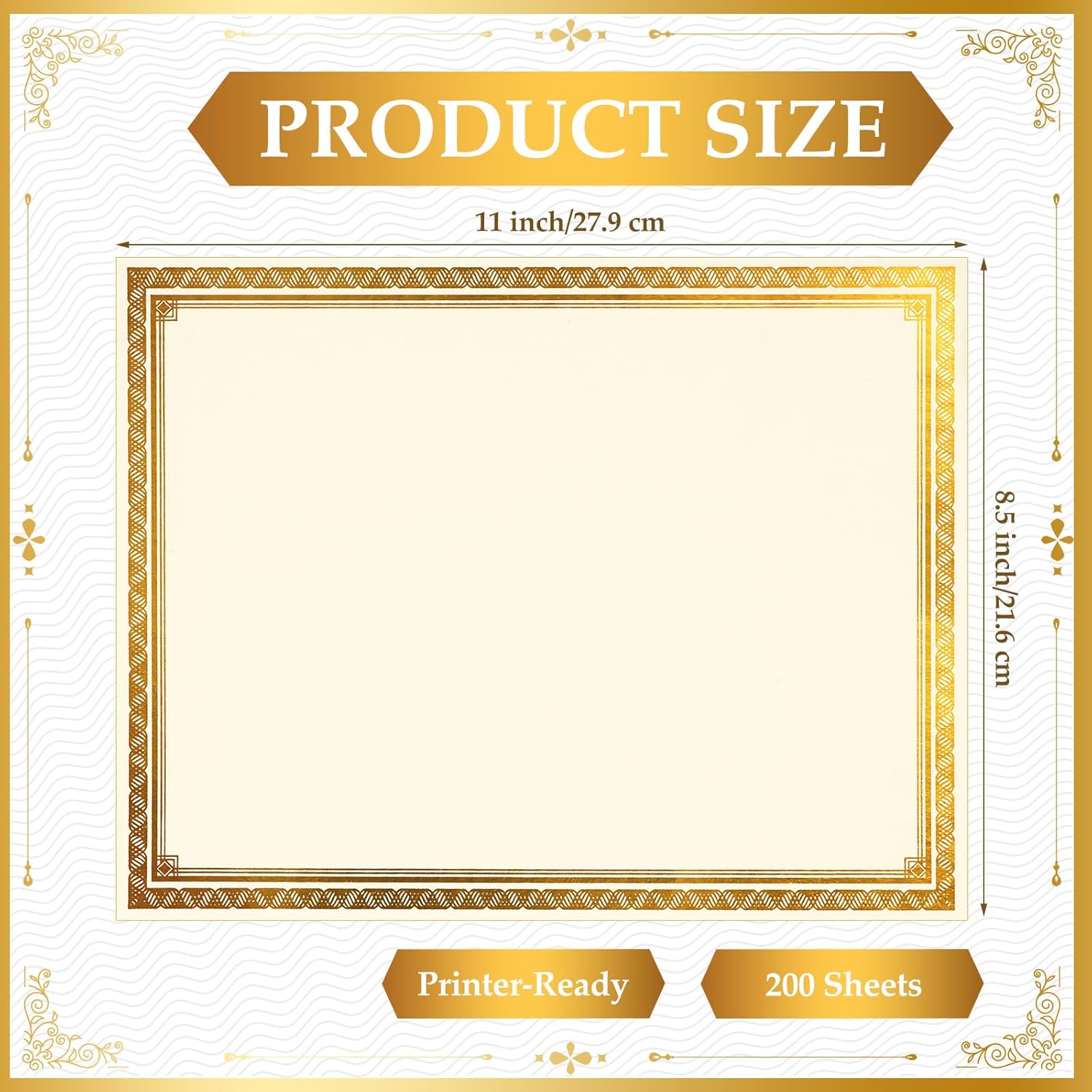 Certificate Paper 8.5 x 11 for Printing Blank Award Certificate for Graduation Diploma Achievement Participation Award Document (200pcs,Gold)