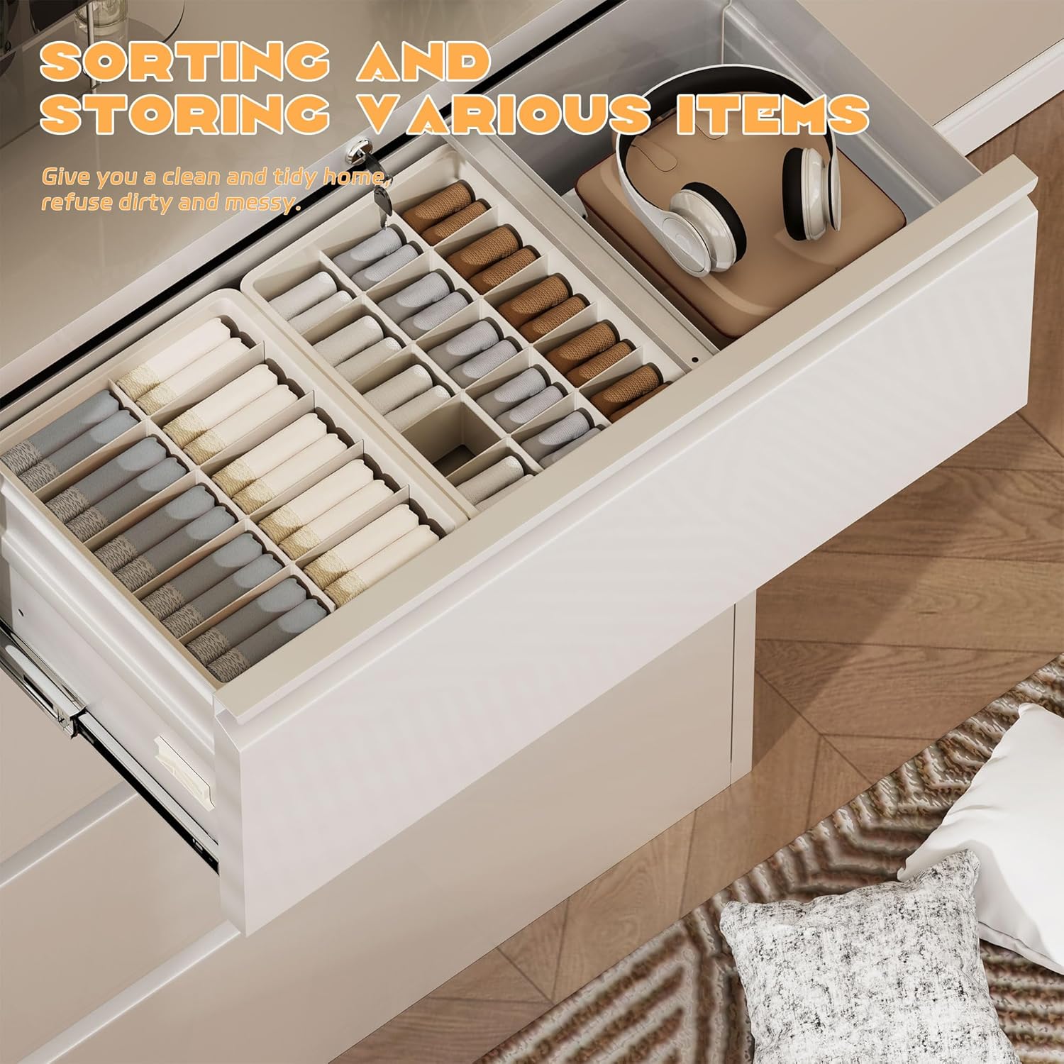 - β€ Smooth & Quiet Operation -- The white file cabinet have smooth rolling bearing drawers, the drawers open and close effortlessly without jamming or noise. The sound produced when pulling the drawer is below 20 dB, which can create a quiet working environment for you.