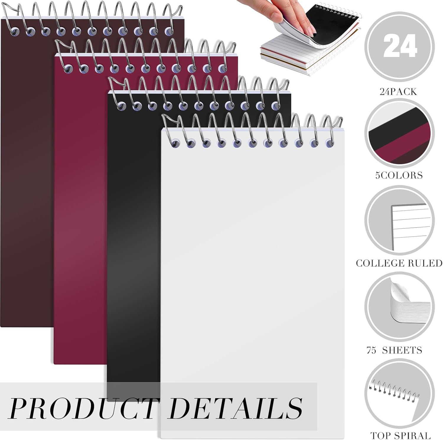 Leinuosen 24 Pcs Spiral Memo Pads 3x5 Inch 75 Sheets College Ruled Small Pocket Notebooks Little Mini Notepads Bulk Top Bound Lined Note Pads for Home School Office Travel Work (Classic Color)