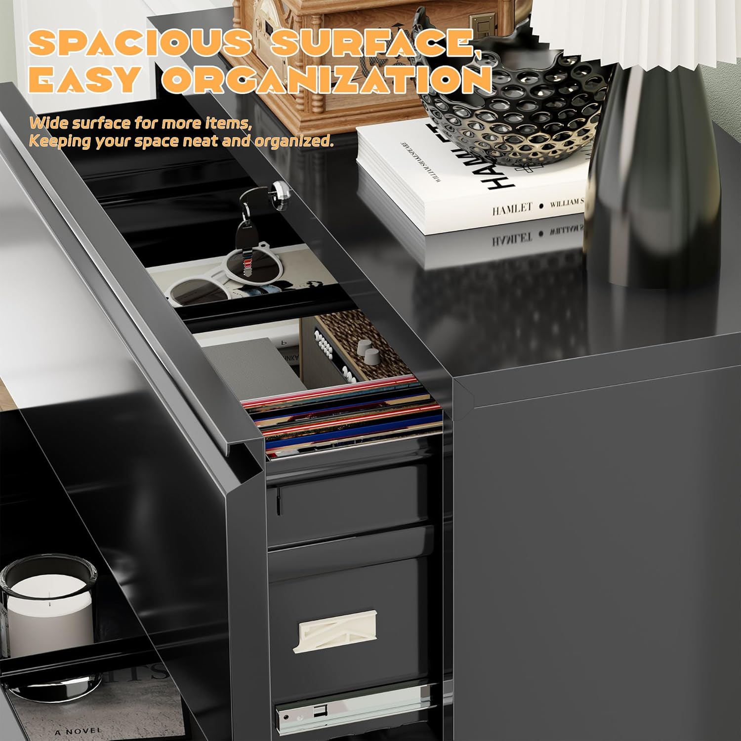 - β€ Smooth & Quiet Operation -- The black file cabinet have smooth rolling bearing drawers, the drawers open and close effortlessly without jamming or noise. The sound produced when pulling the drawer is below 20 dB, which can create a quiet working environment for you.