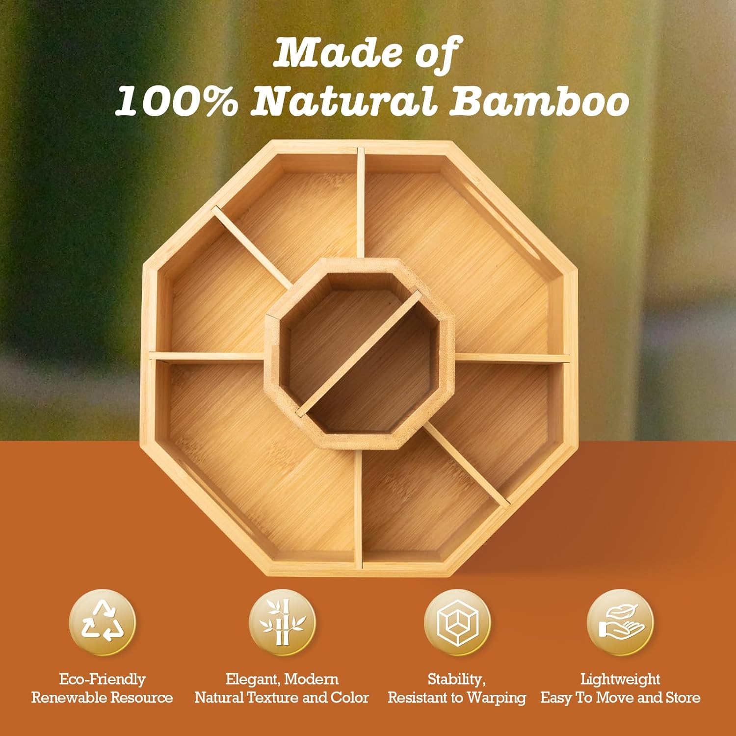 - 【More Flexible Organization with More Space】Features a 10x10 inch regular octagon shape and enlarged double-layer space. The first layer is divided into 4 standard and 2 double-standard compartments (6 in total), plus a higher centre with a removable divider. Its multi-sized compartments adapt to different space requirements, making it an effective desk organizer. Keep your items organized, clean, and ready to use.