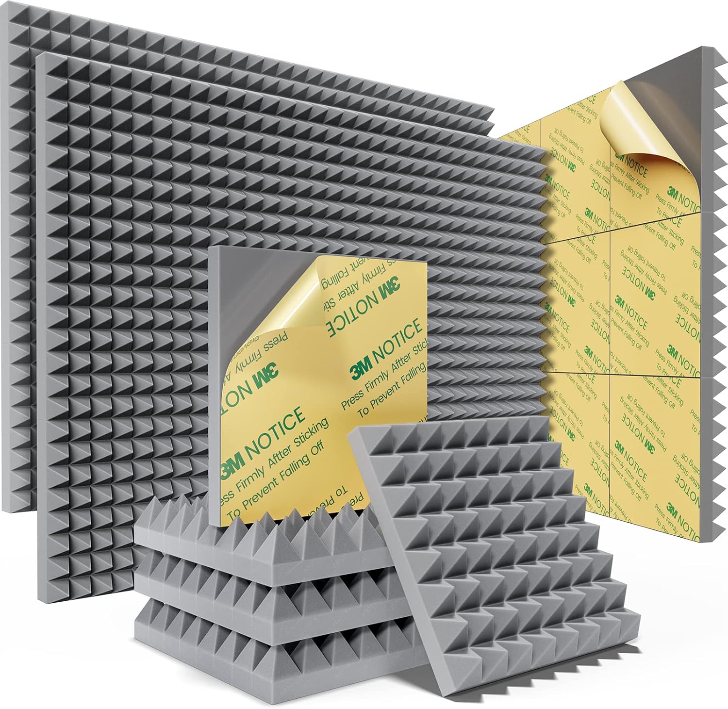 Sonicism Acoustic Panels Self-Adhesive Pyramid 36 Pack,12" X 12" X 2"Sound Proof Foam Panels for Walls Fast Expand 35kg/m³High Density Soundproof Wall Panels,Sound Absorption and Decoration Gray